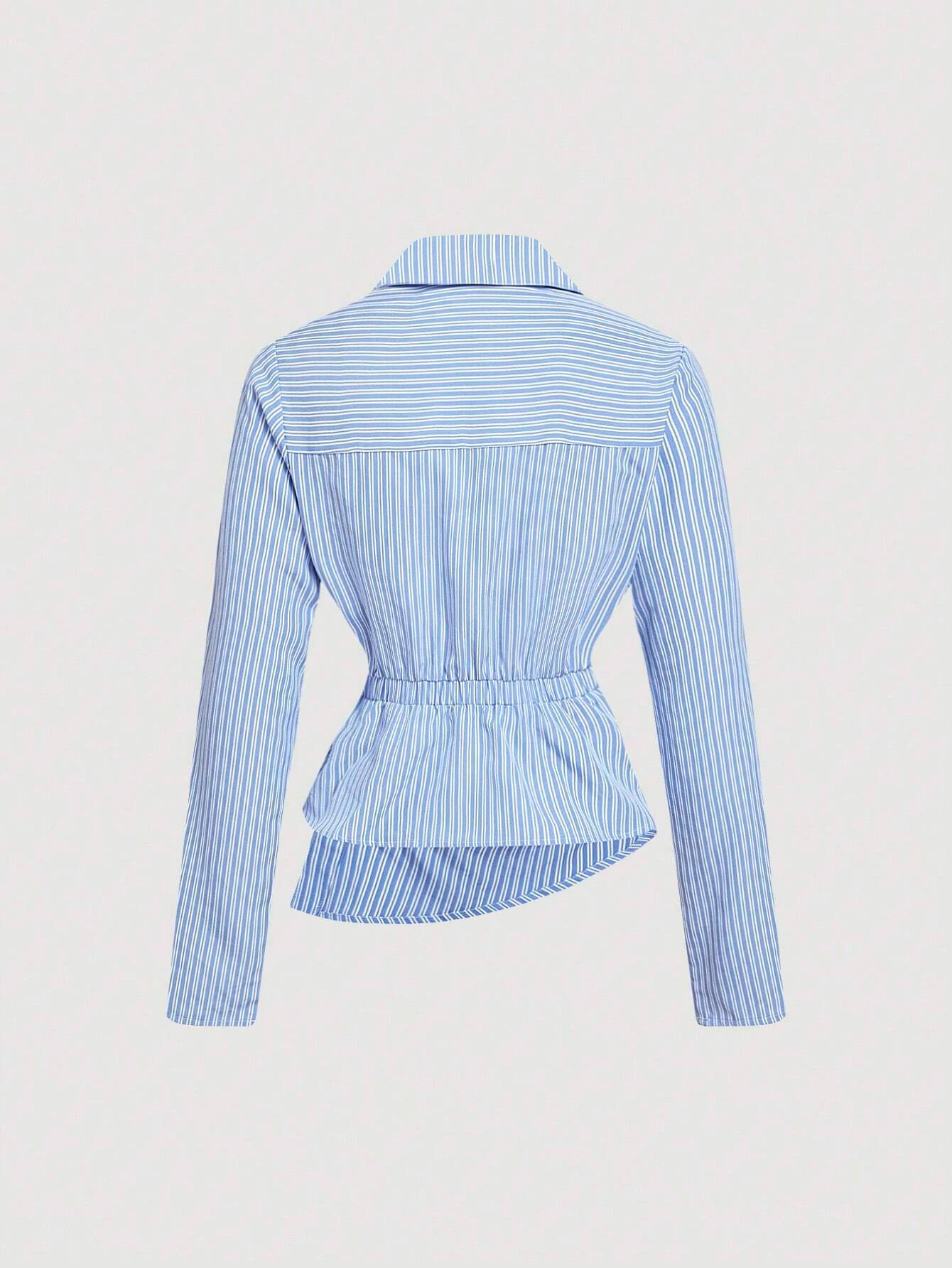 Европейская и американская амазонка женская сине-белая асимметричная рубашка с длинными рукавами в полоску