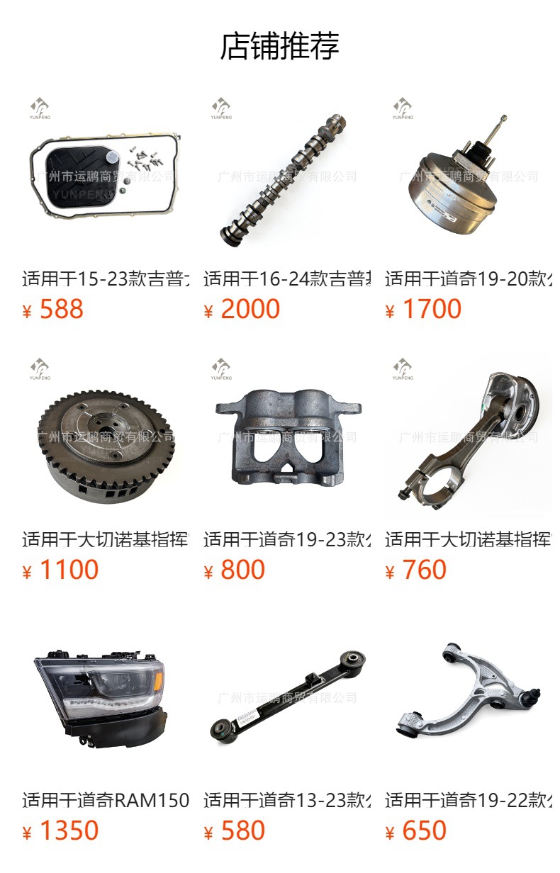公司经营美国克莱斯勒,Jeep,道奇,广汽菲克 (牧马人,牧马人皮卡角斗士,指南者,自由客,自由光,大切诺基,指挥官,大指挥官,自由侠,自由人,300C,大捷龙,大捷龙凯领,漫步者,赛百灵,酷威,酷博 ,杜兰戈,赛百灵,挑战者 ,战马,RAM公羊皮卡霸王龙,复仇者。)全车配件,优质品牌件,纯正原厂件,一手货源,价格更优