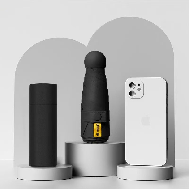 Карманный зонт-капсула, утолщенное черное покрытие, защита от солнца, двойное назначение для солнца и дождя, портативный женский зонт от солнца, оптовая кастомизация.