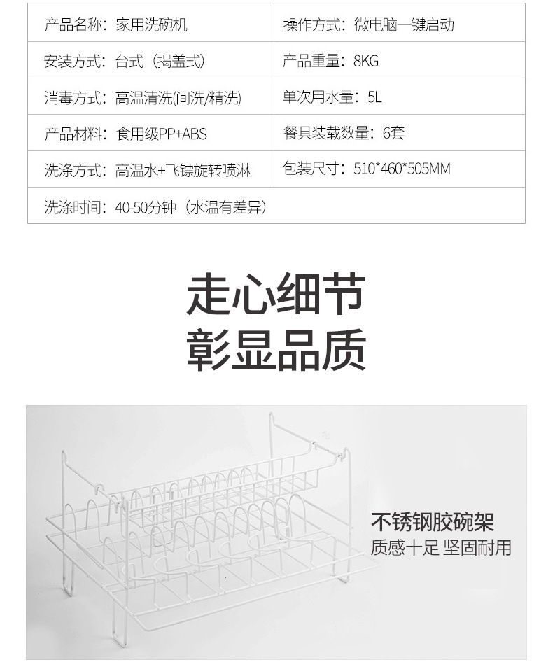 Кросс-граничная коммерческая посудомоечная машина для дома, умная, полностью автоматическая, без установки, настольная, компактная, с функцией сушки и дезинфекции