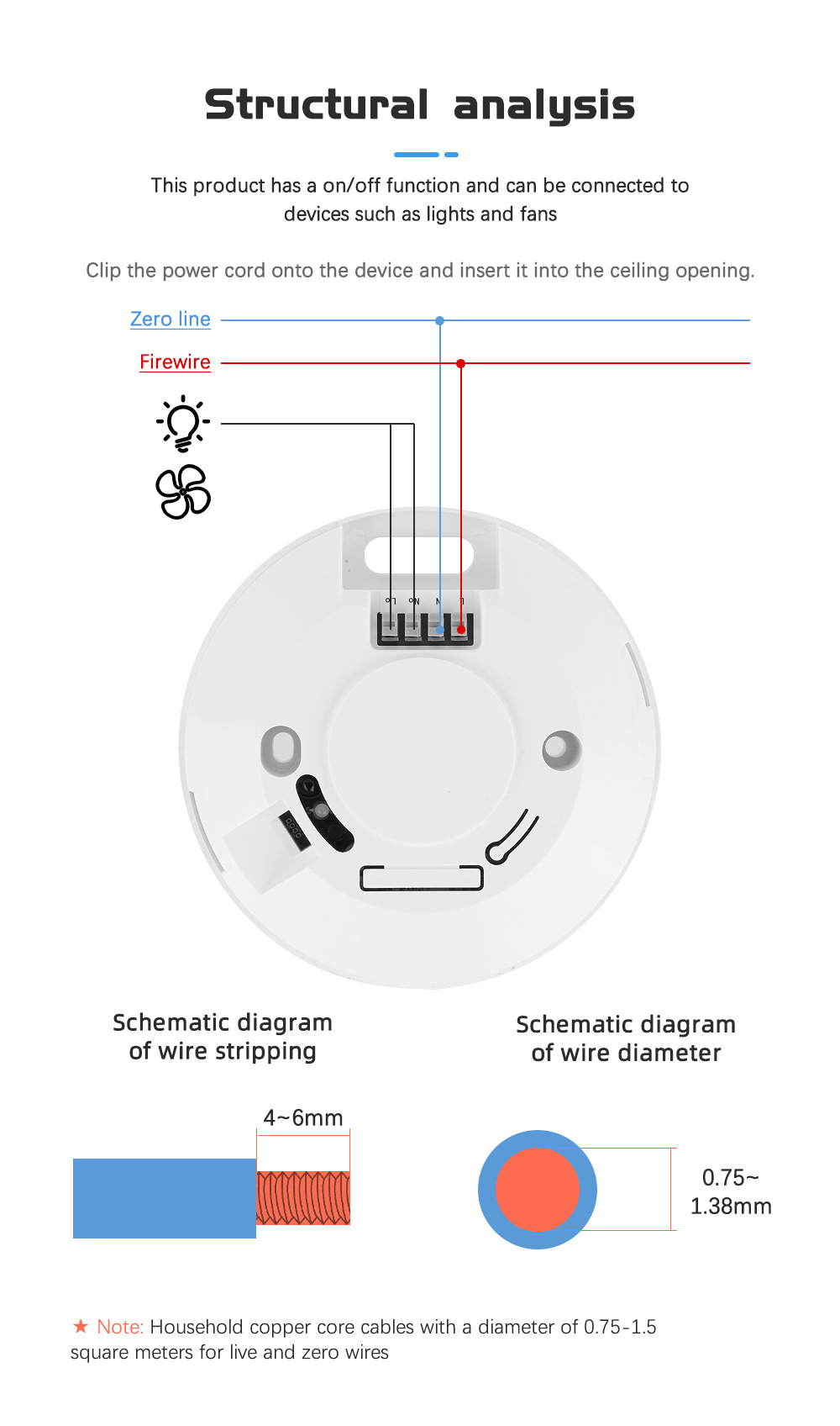 您可以使用双面胶或膨胀螺丝将其安装在天花板或墙壁上。该设备支持连接85-265V交流电源。