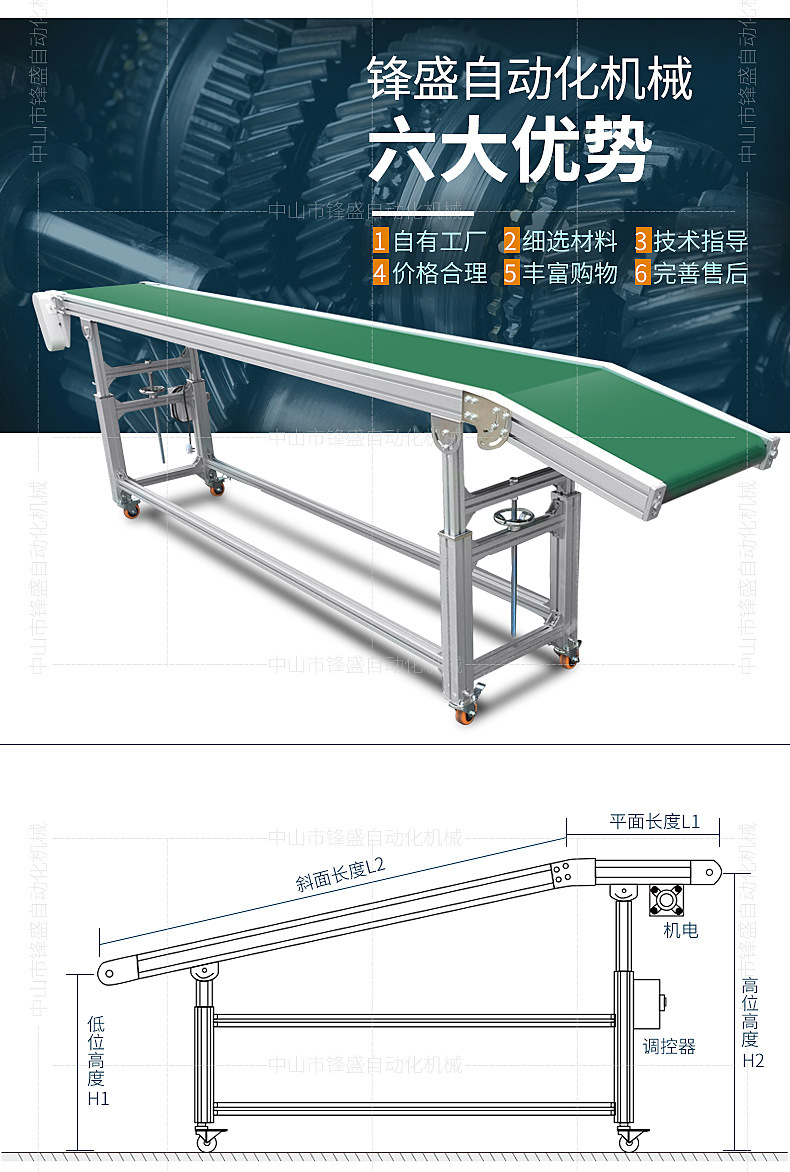 Конвейерная лента для сборочных линий, подъемная конвейерная лента, машина для литья под давлением, наклонный конвейер, платформа для соединения конвейерных линий, подъемный частотный преобразователь.