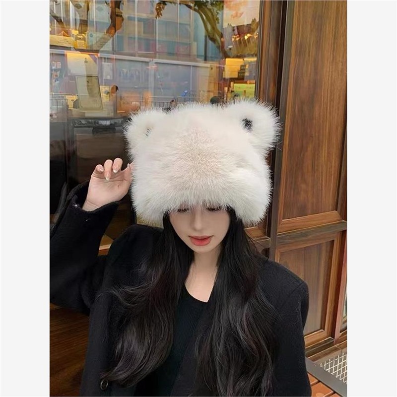 Harbin Travel Bear Hat Женская осенне-зимняя утолщенная шапка Baotou Монгольская шапка, открывающая лицо, маленькая шапка с лисьим мехом для защиты ушей