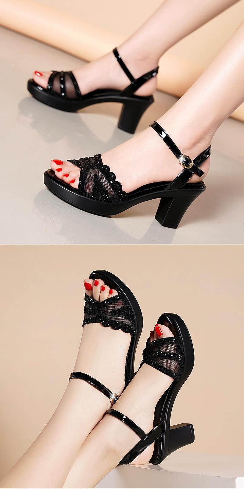 Сетчатая пряжа модный темперамент толстый каблук с пряжкой босоножки со стразами спот 2024 новые женские туфли на каблуках
