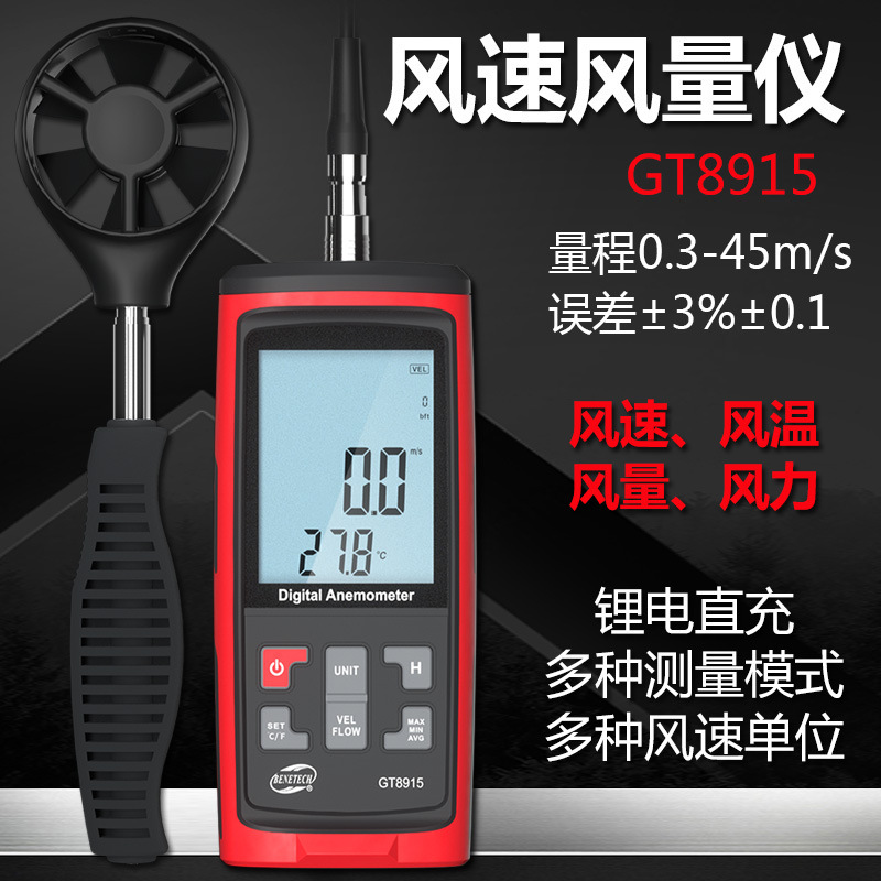 GT8915 [Модель зарядки] Скорость ветра, объем воздуха, температура воздуха, мощность ветра