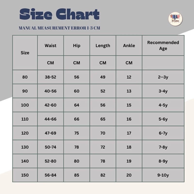 80cm; 90cm; 100cm; 110cm; 120cm; 130cm; 140cm; 150cm