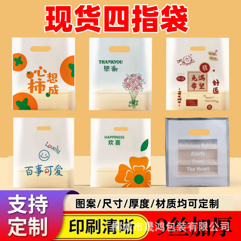 Пластиковый мешок-саквояж на четыре пальца для продуктов, фруктов, выпечки, десертов, тортов, кейтеринга, упаковка, индивидуальный дизайн