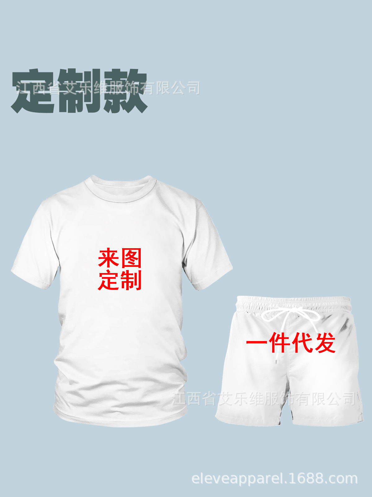 Мужской комплект: футболка с круглым вырезом и короткими рукавами, а также шорты, изготовленные на заказ с вашим дизайном, образцами и размерами, печать для трансграничной электронной коммерции и OEM-производство.