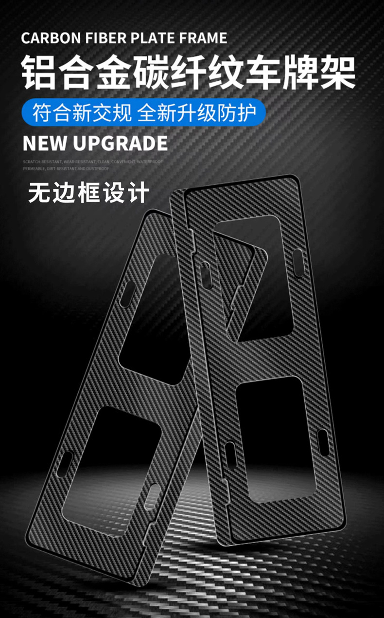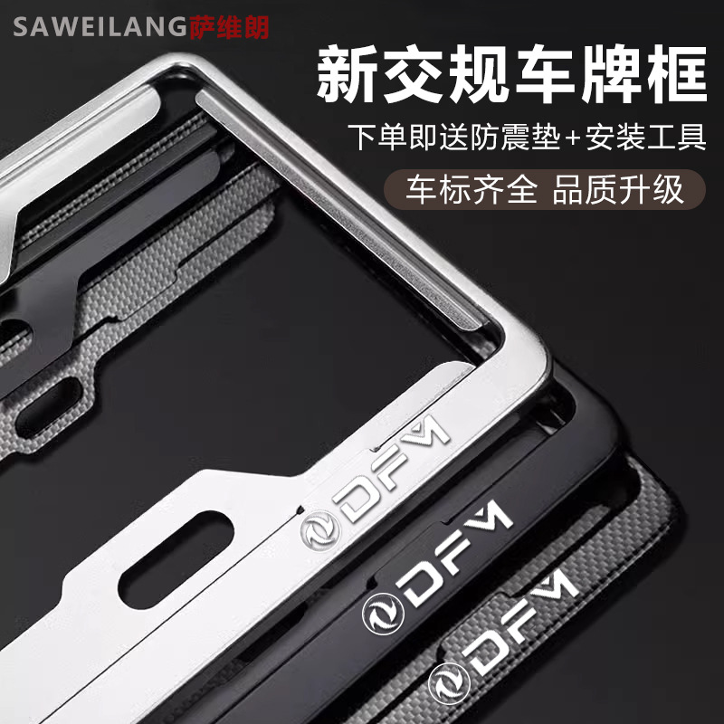 Dongfeng Fengshen Fengguang рамка номерного знака новой энергии, защитная рамка номерного знака, синяя пластина, черное углеродное волокно, небьющийся алюминиевый сплав