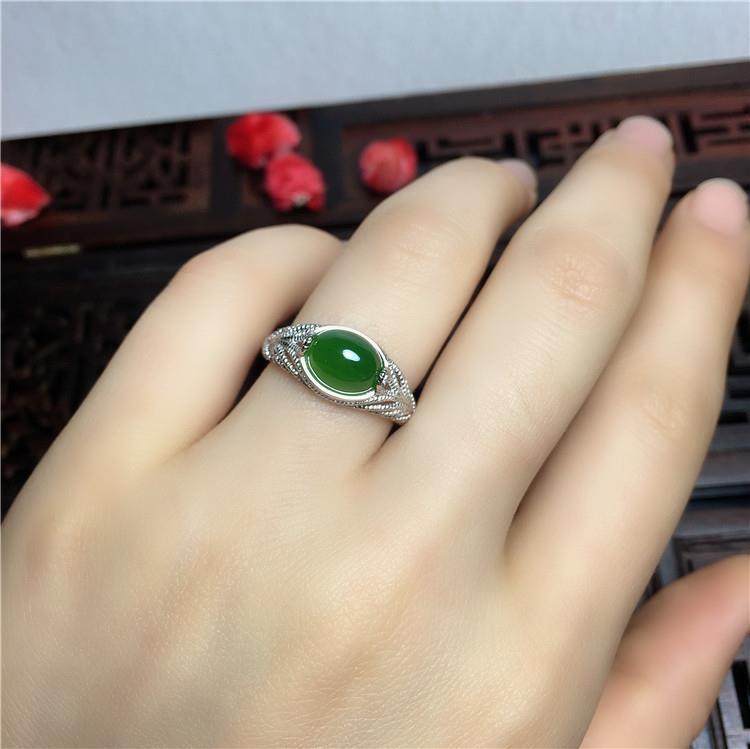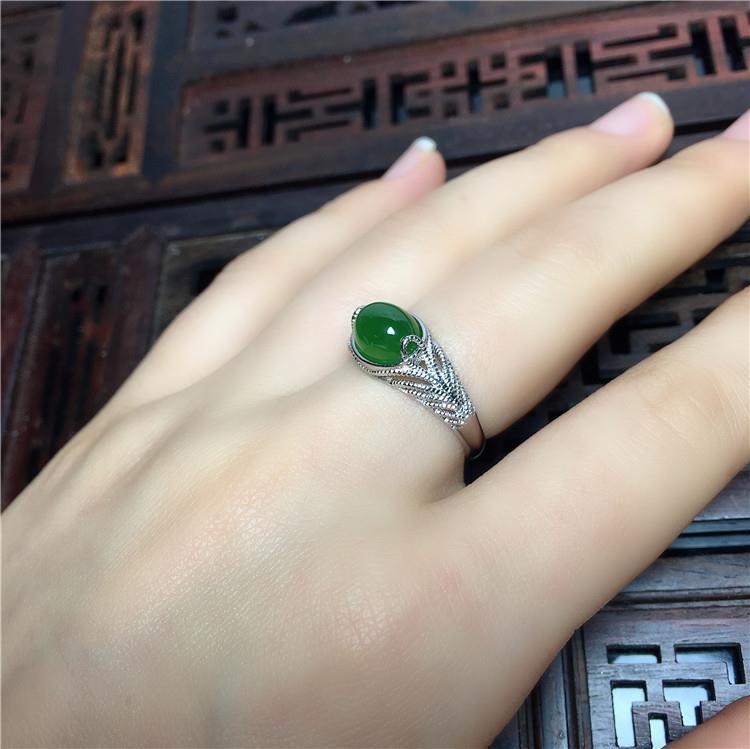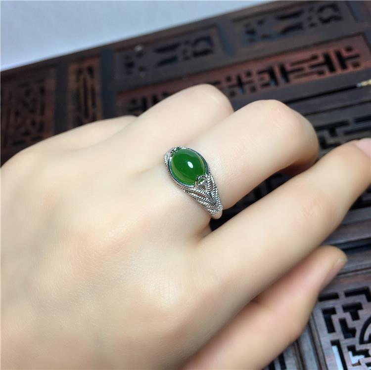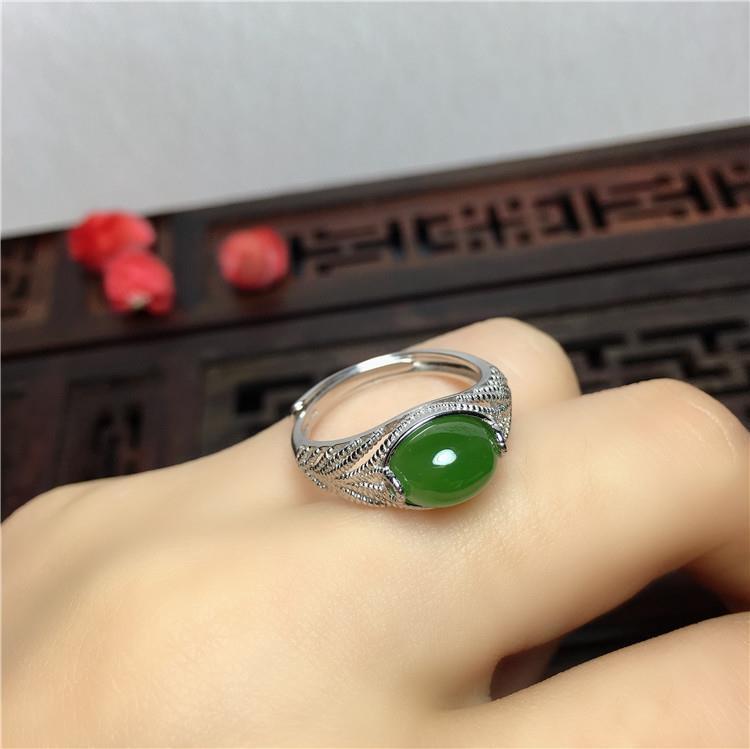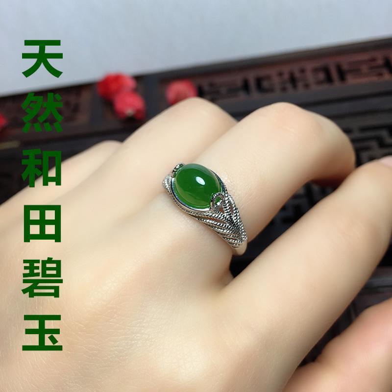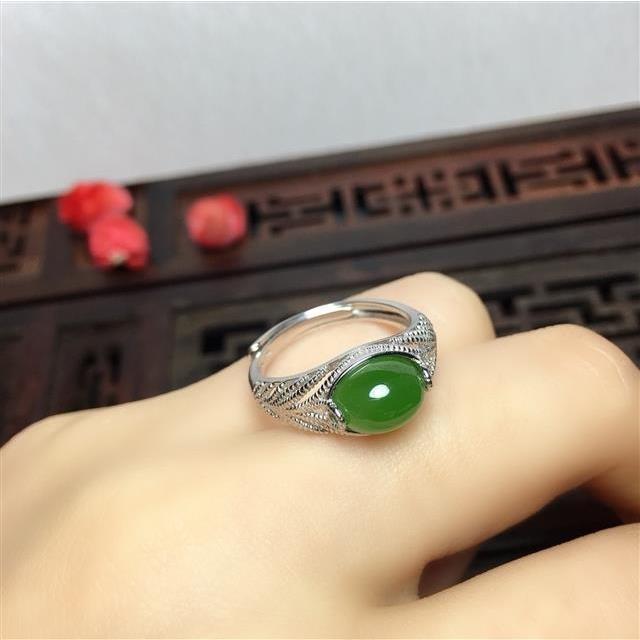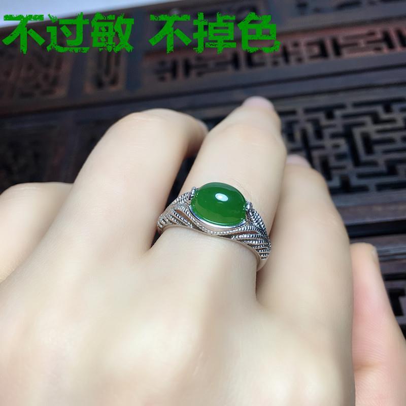 Натуральный Хотан Джаспер Нефритовое кольцо Женский 925 Изумрудный Изумрудный Серебро Японский и Южной Кореи Простое кольцо указательного пальца Изумрудный цвет