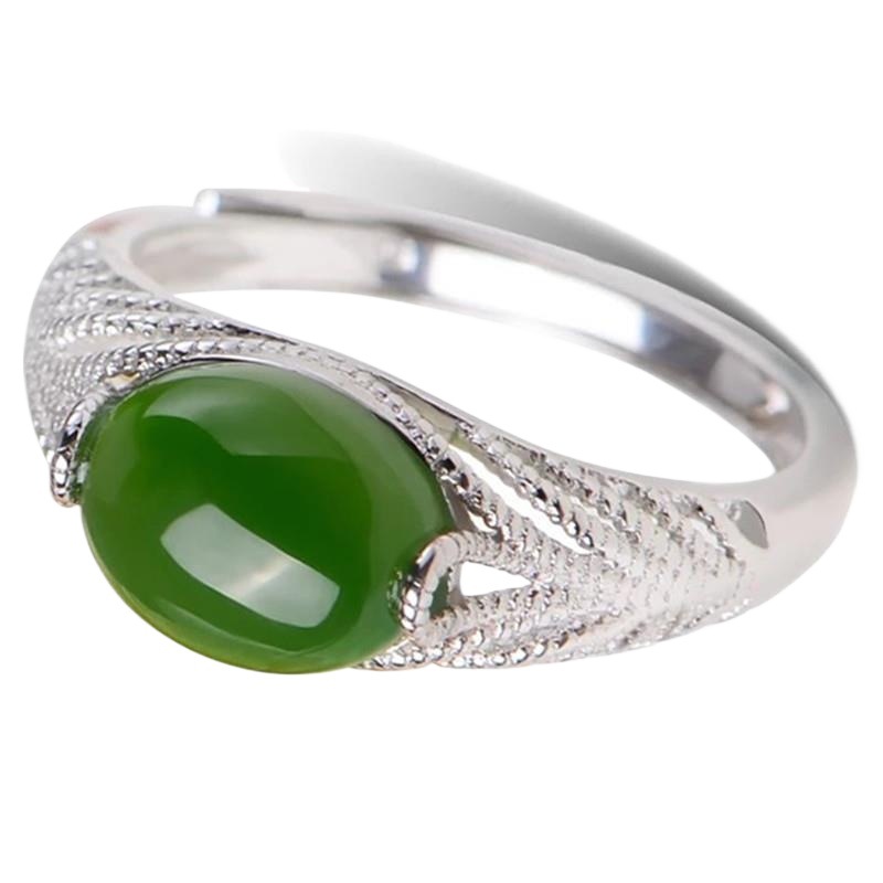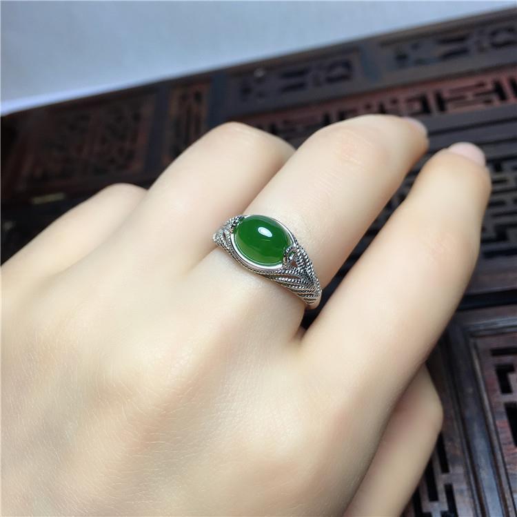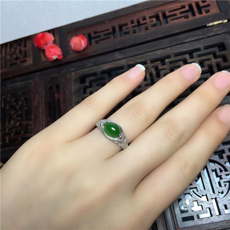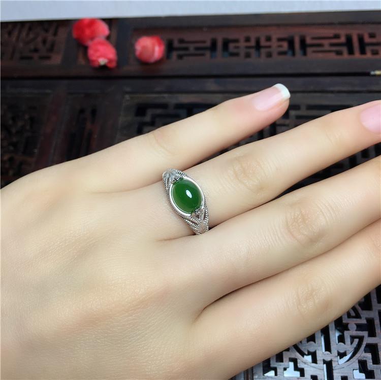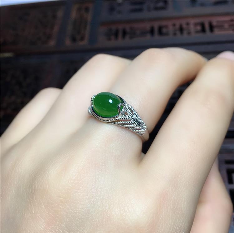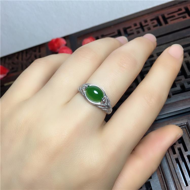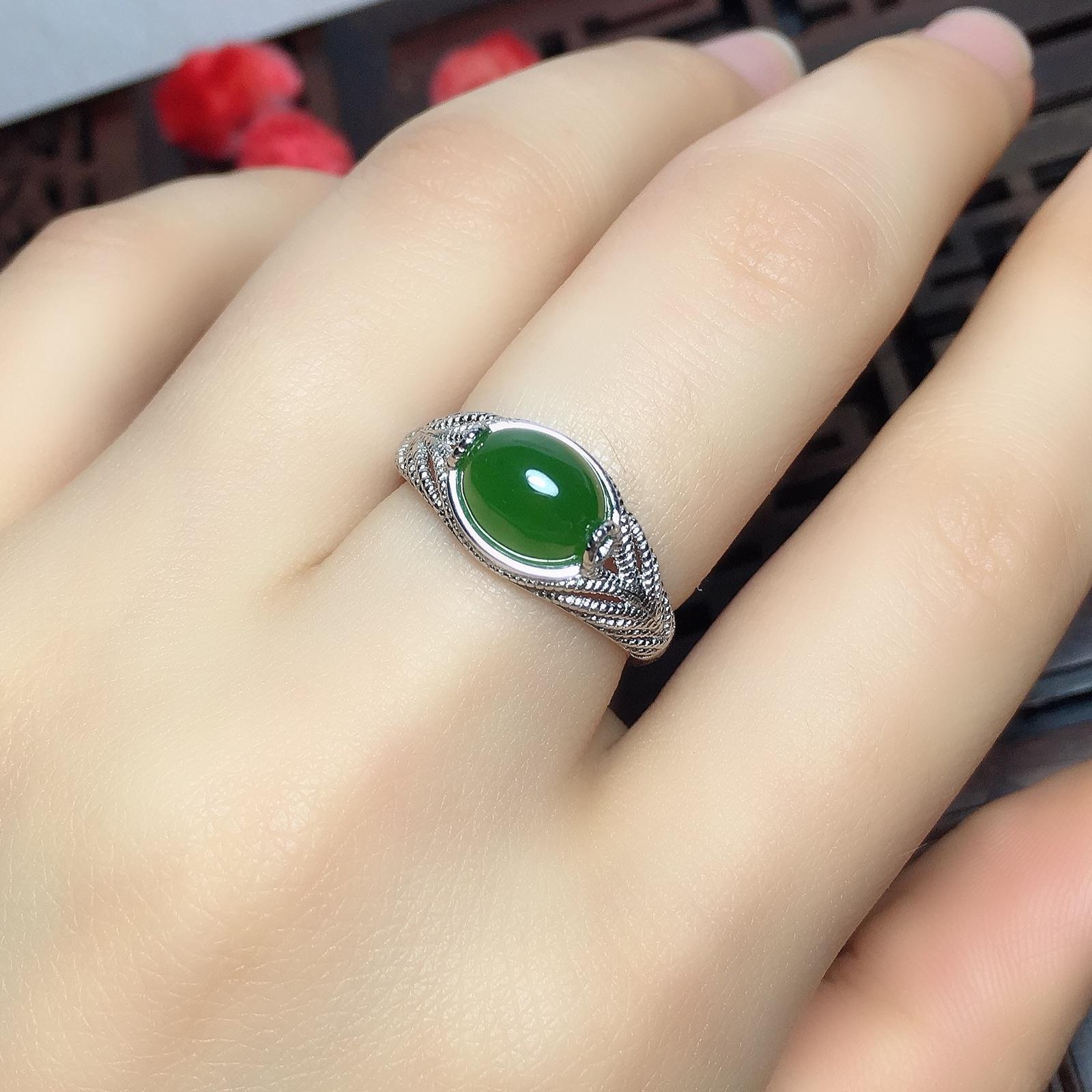 Натуральный Хотан Джаспер Нефритовое кольцо Женский 925 Изумрудный Изумрудный Серебро Японский и Южной Кореи Простое кольцо указательного пальца Изумрудный цвет