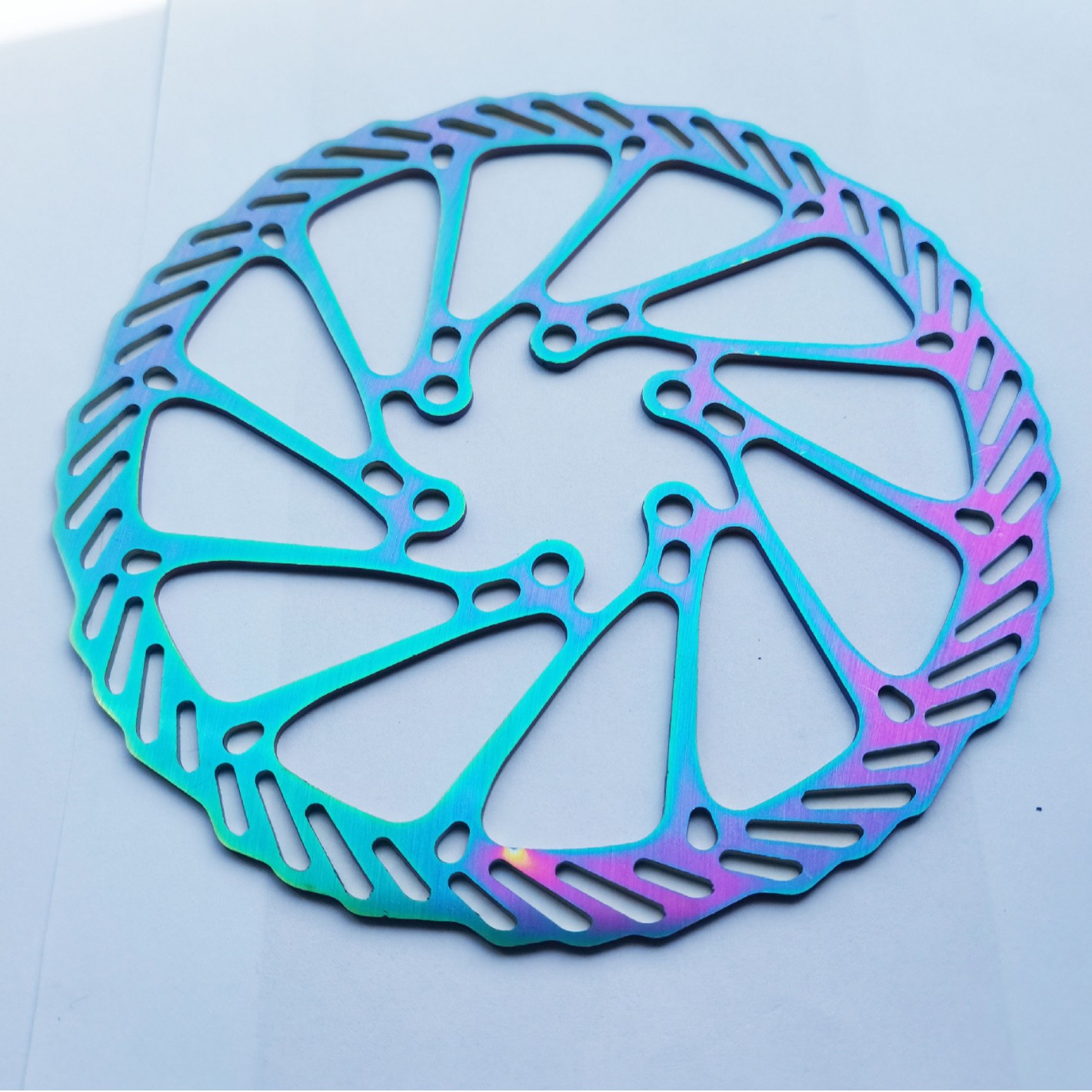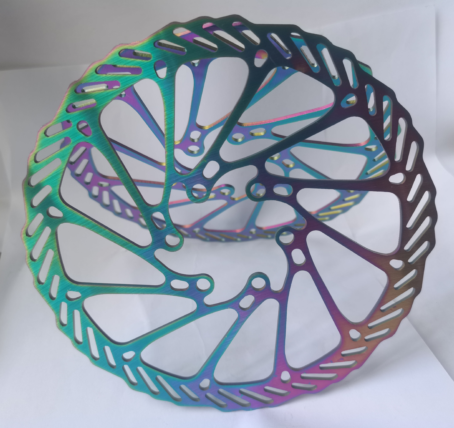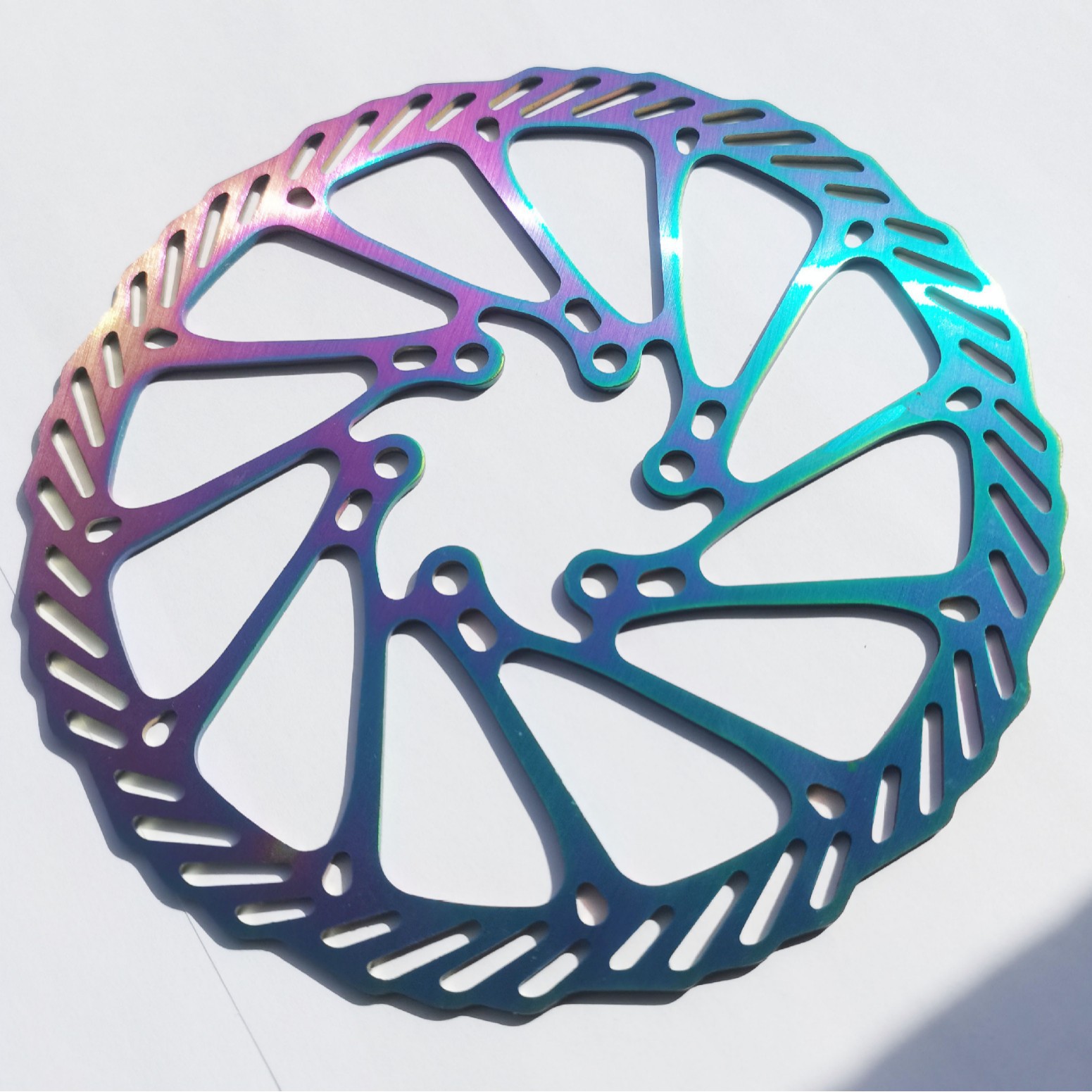 我们可以生产制作 蓝色 红色 金黄色 玫瑰金色 七彩色 等碟刹钢盘,有140/160/180MM 三种尺寸,采用表面镀钛工艺, 产品耐磨 持久