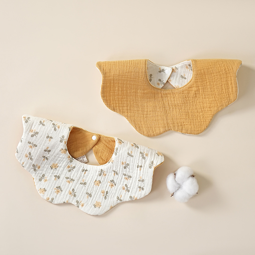 A类ins全棉纱布春夏花瓣双面婴儿口水巾花朵360度小围嘴围兜