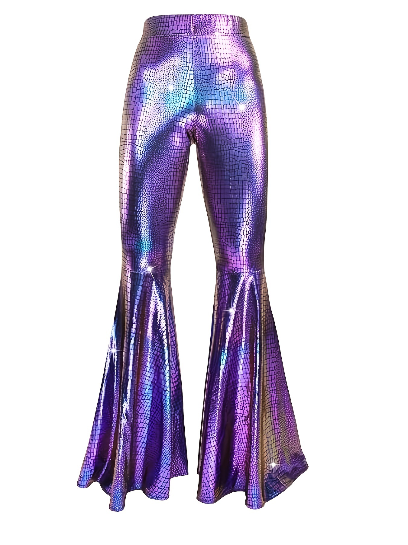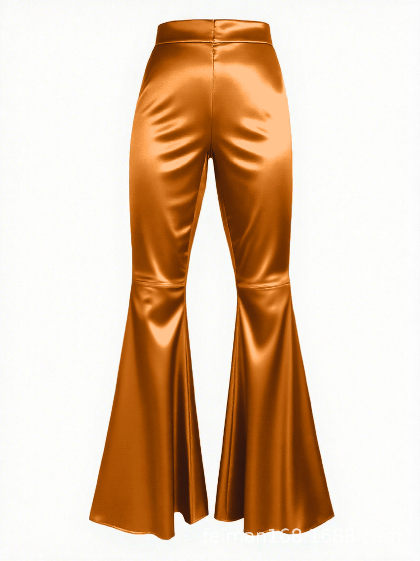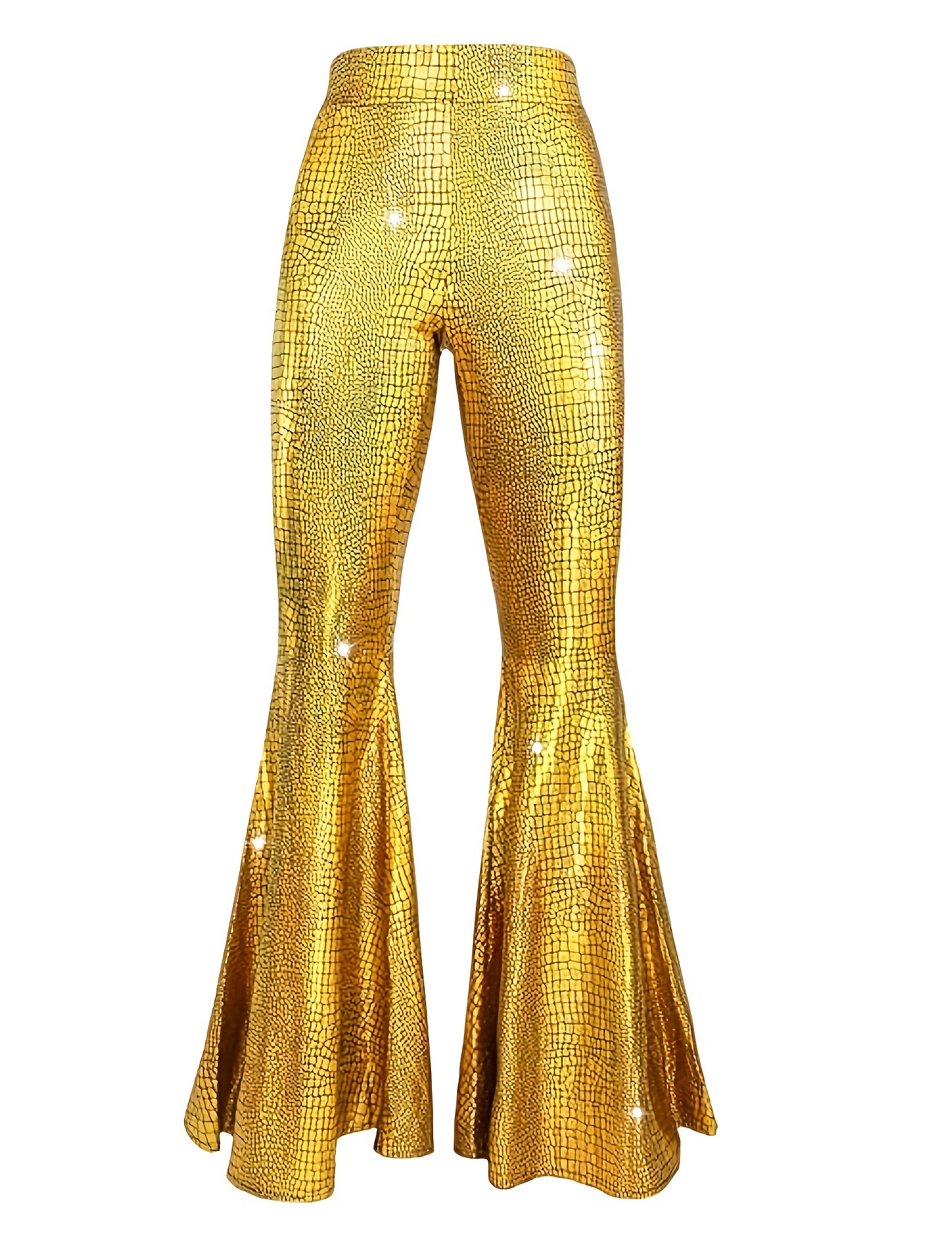 Весенне-летние тонкие расклешенные брюки с золотым тиснением под змеиную кожу для женщин, с высокой талией, эластичные, больших размеров, сексуальные микро-расклешенные брюки, удлиненные, увеличивающие рост.