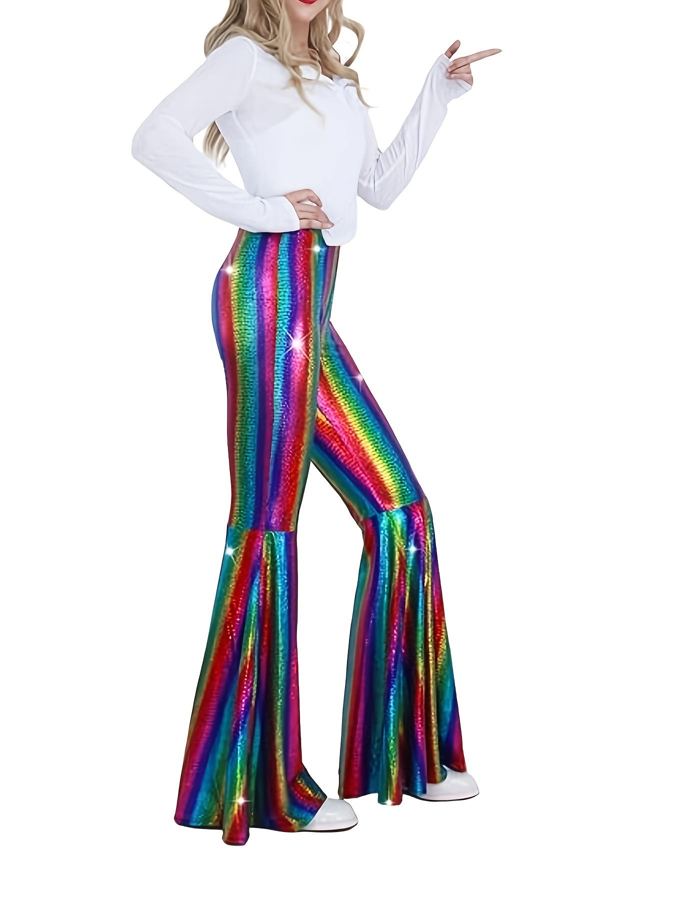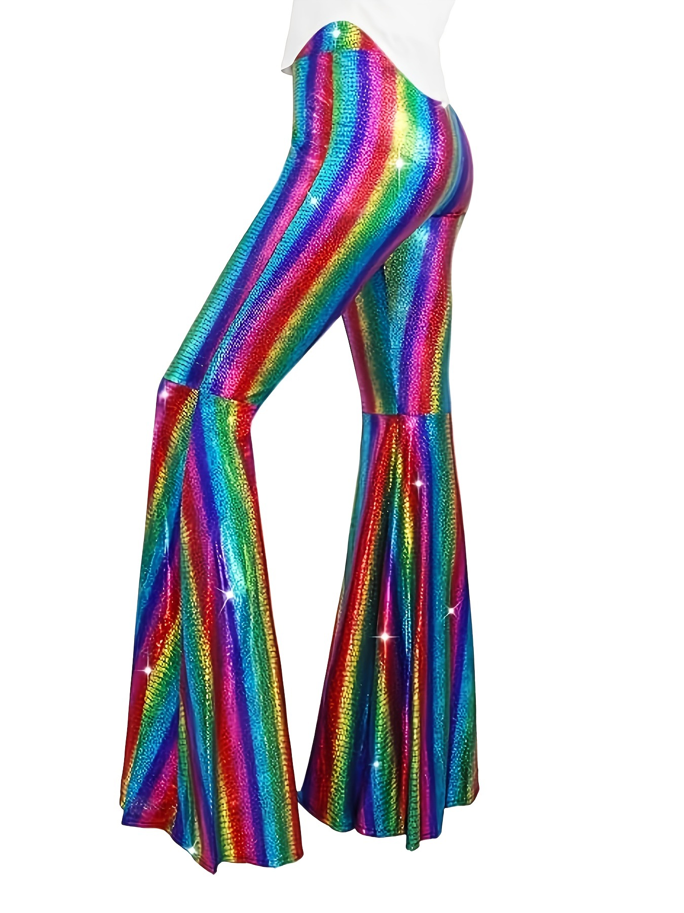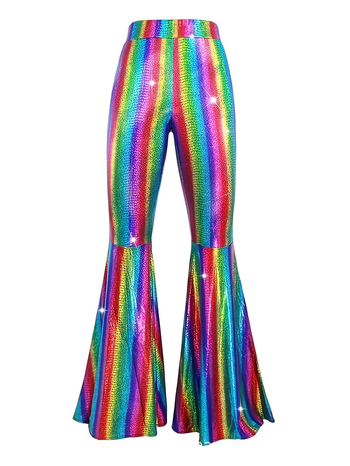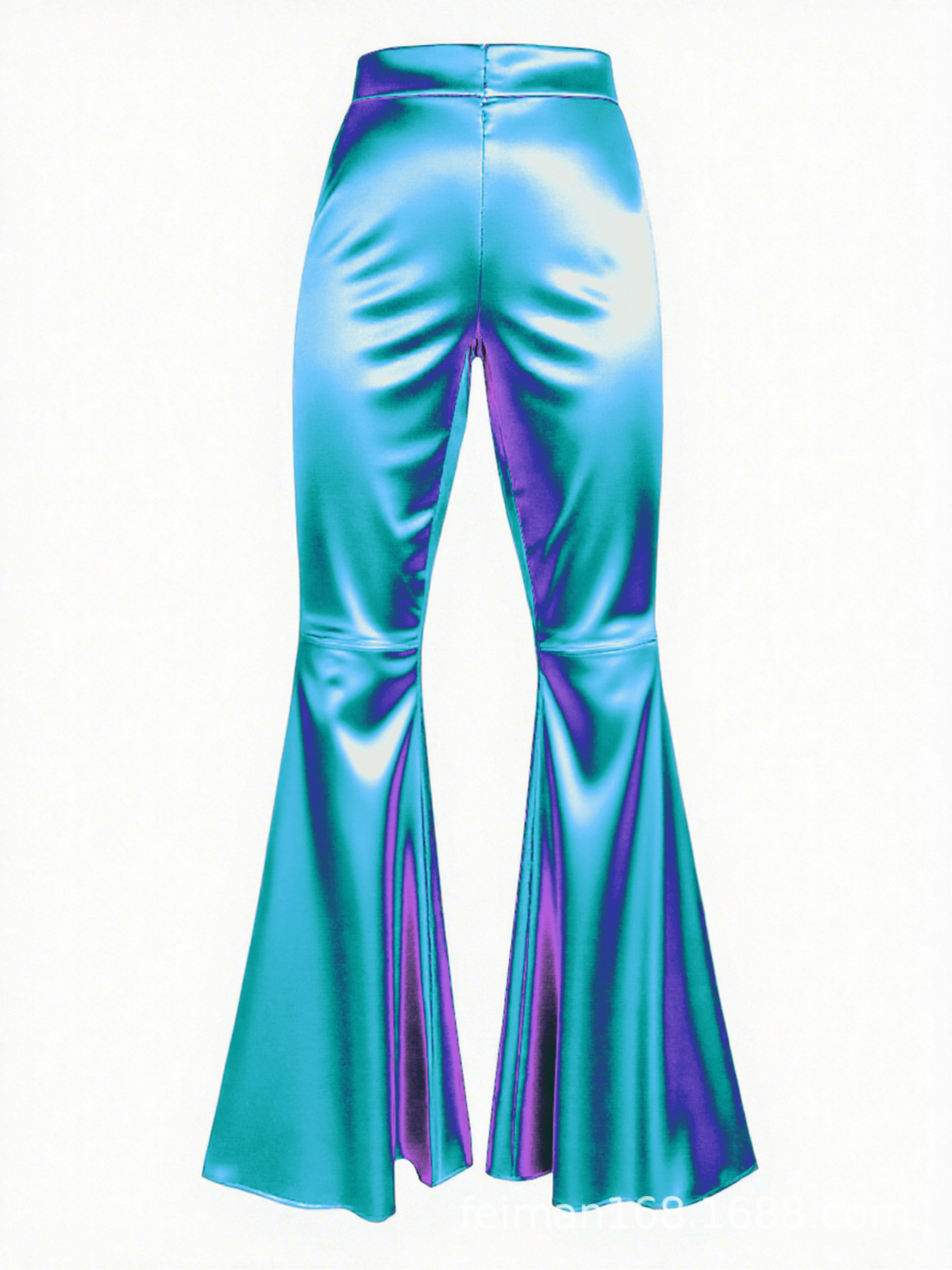 Весенне-летние тонкие расклешенные брюки с золотым тиснением под змеиную кожу для женщин, с высокой талией, эластичные, больших размеров, сексуальные микро-расклешенные брюки, удлиненные, увеличивающие рост.
