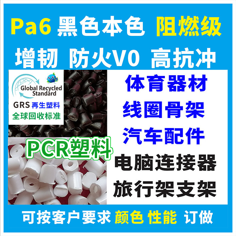 RPA6 черный переработанный пластик с сертификацией GRS, огнестойкий, упрочненный, армированный RPA66, натуральный цвет, ударопрочные пластиковые частицы