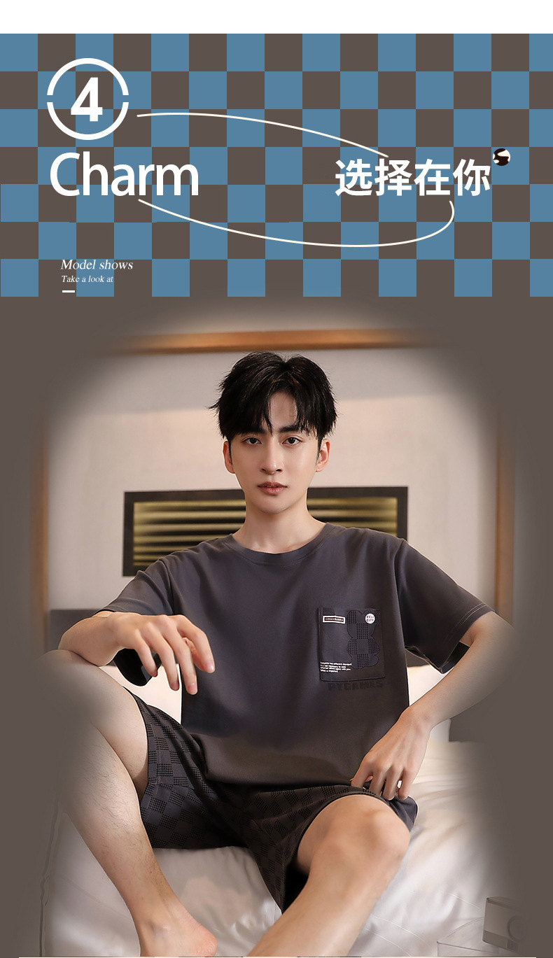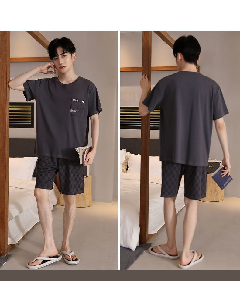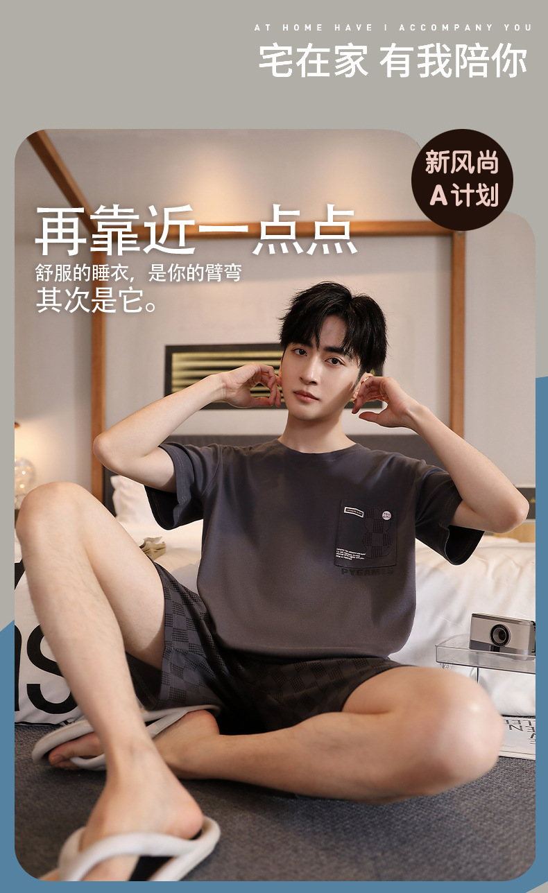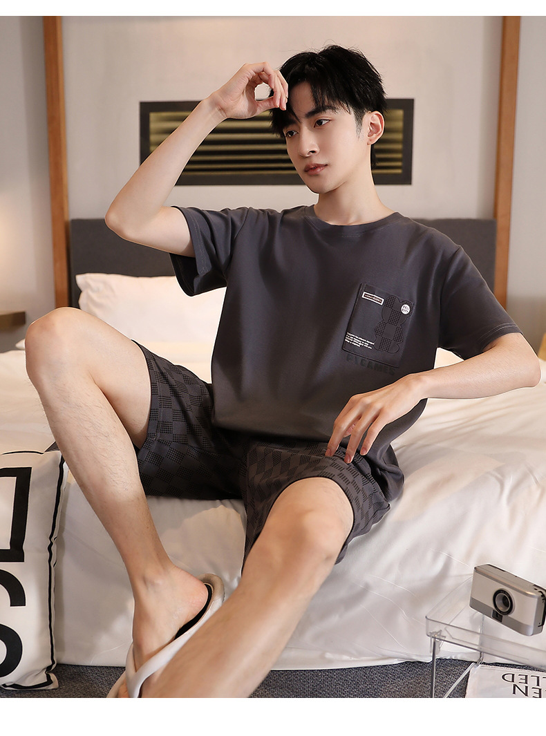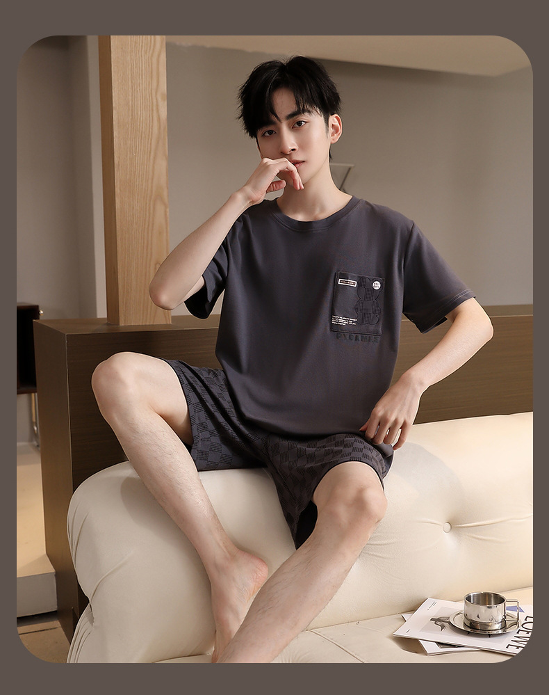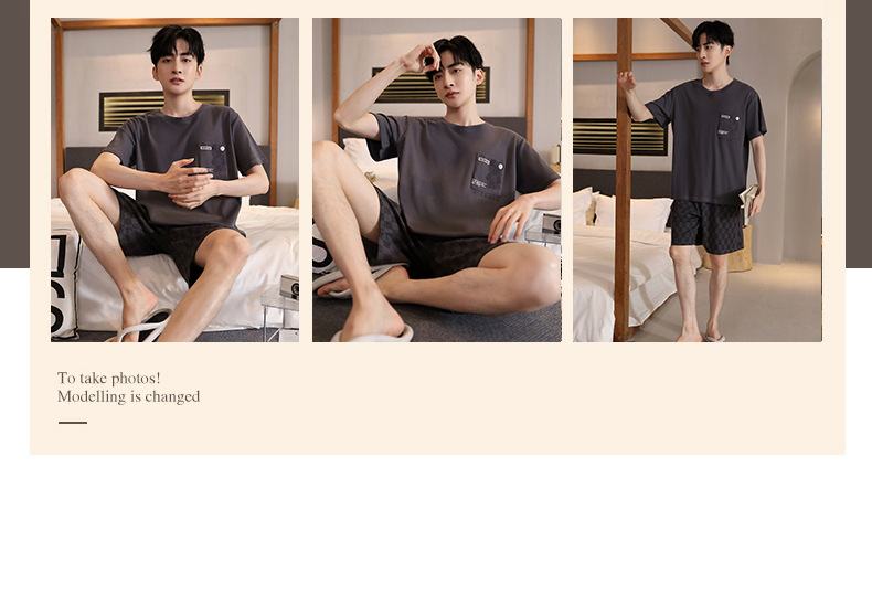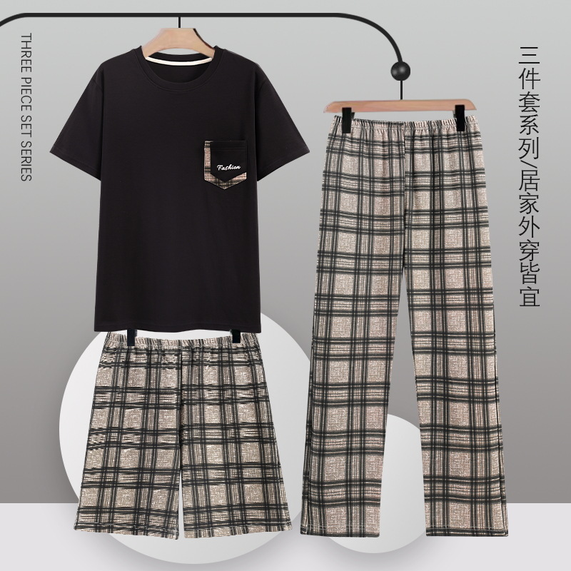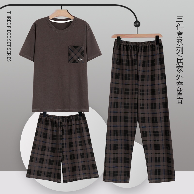 Мужской пижамный комплект из трех предметов, весенне-осенние шорты и брюки из чистого хлопка с короткими рукавами, весенне-летняя домашняя одежда, тонкие костюмы, которые можно носить на улице.
