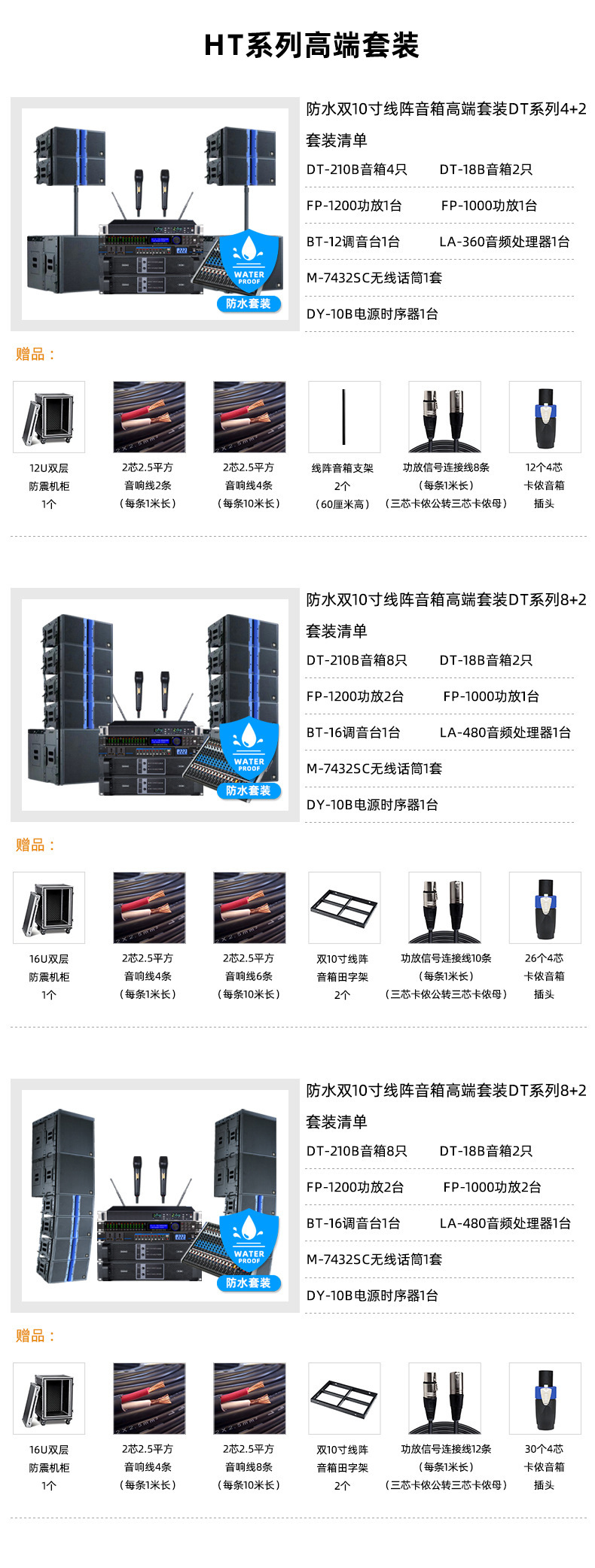 Водонепроницаемый двойной 10inch-линейный динамик HT-210B; Водонепроницаемый одиночный басовый динамик с 18inch линиями HT-18B; Водонепроницаемый двойной 10inch-линейный динамик серии ClassySuitHT 4+2; Водонепроницаемый двойной 10inch-линейный динамик серии ClassySuitHT 8+2; Водонепроницаемый двойной 10inch-линейный динамик серии ClassySuitHT 8+4