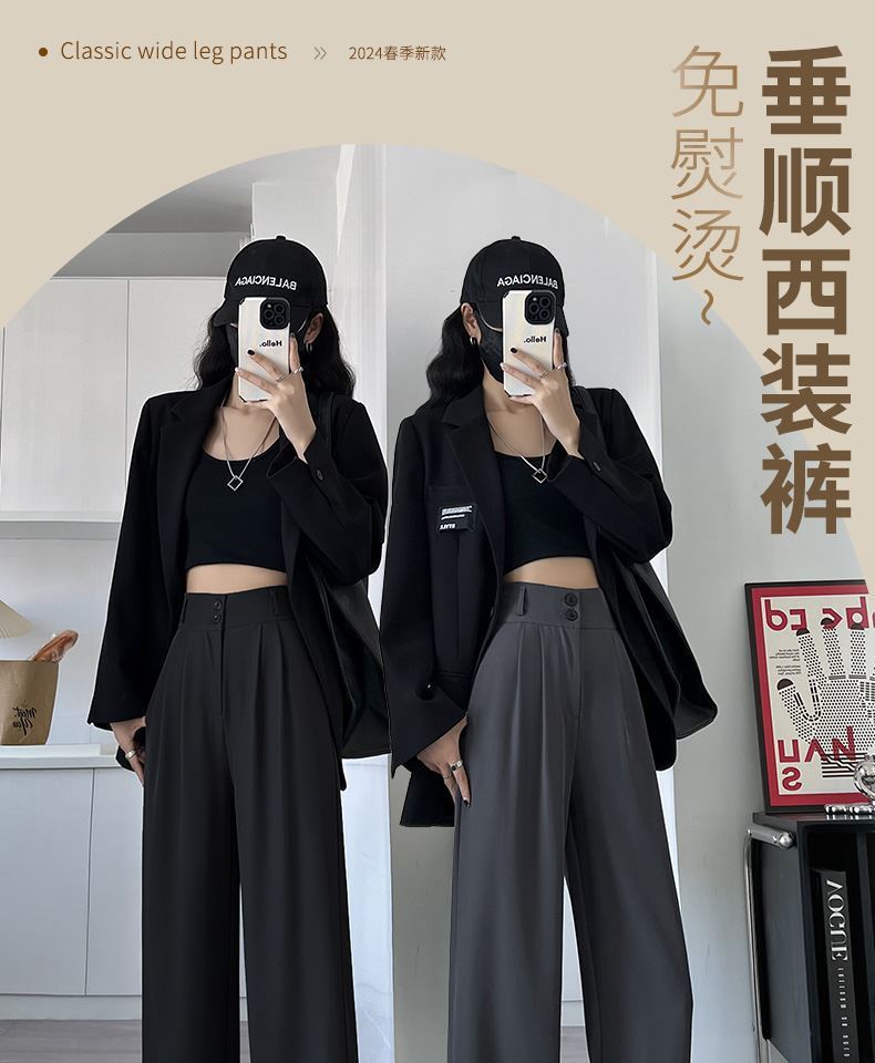 Фабрика прямых продаж оптовые вертикальные прямые брюки женские летние новые высокие талии свободные широкие ноги дикие повседневные брюки