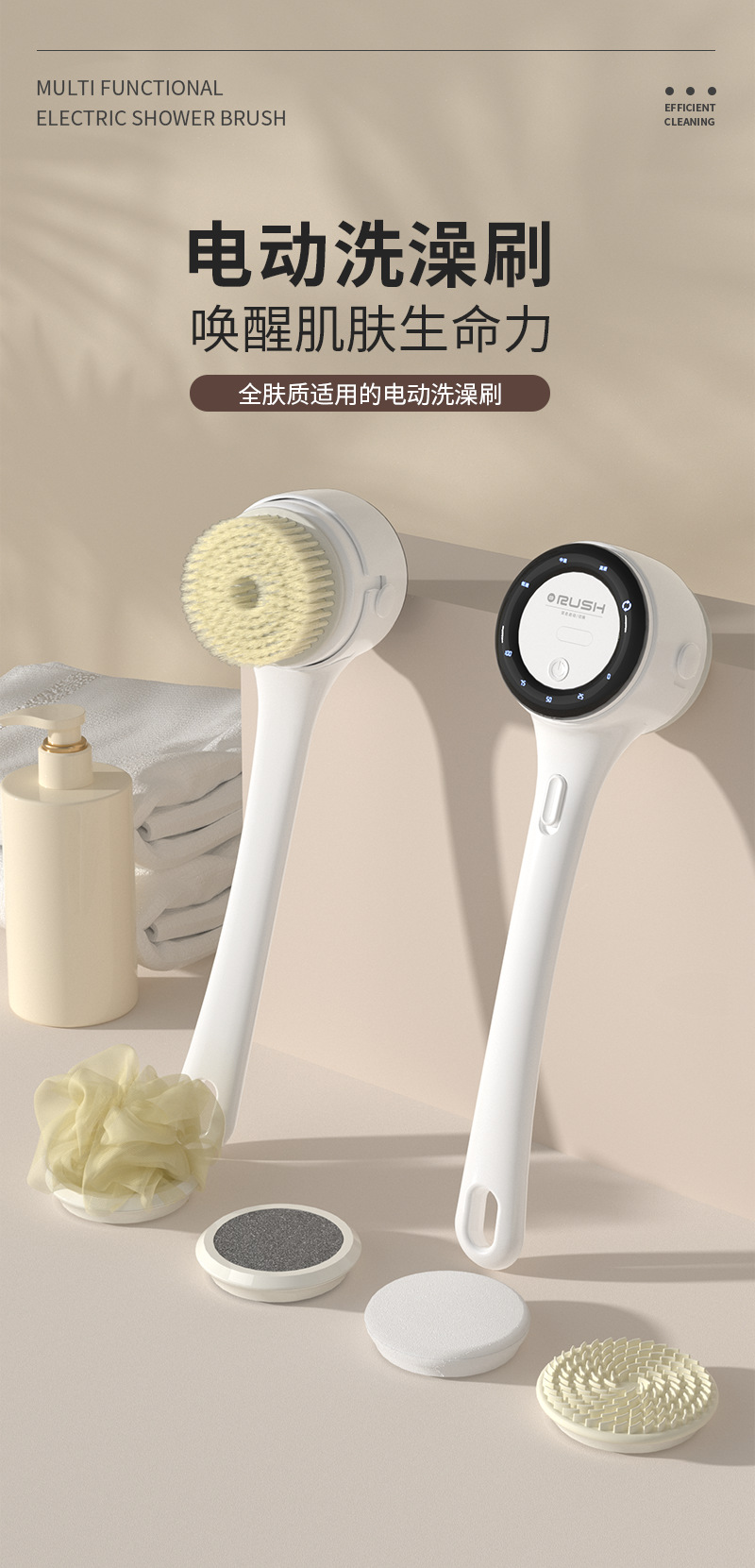 Электрическая щетка для ванны с цифровым дисплеем, двойного назначения, трехскоростная, оснащена пятью насадками.
