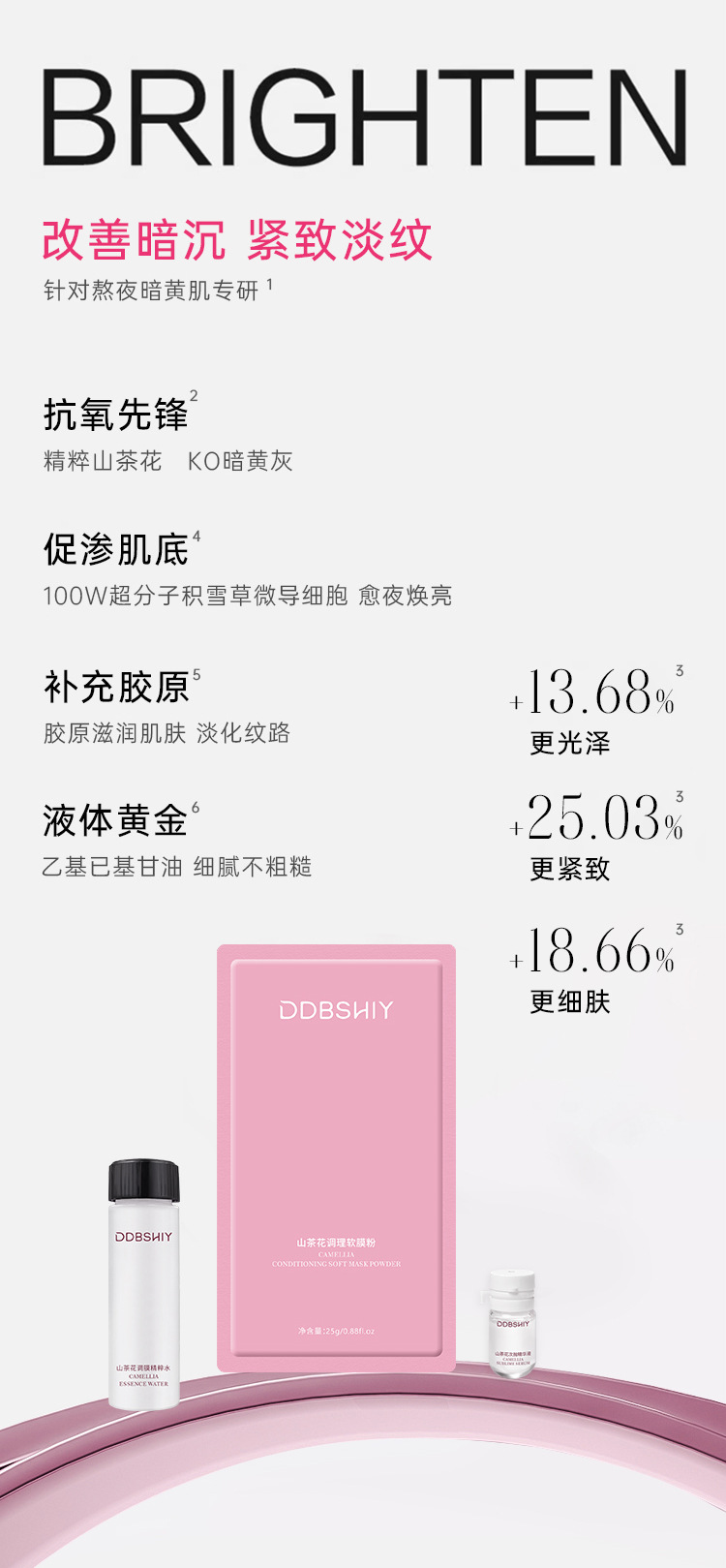 Маска-пудра с экстрактом камелии очищает, сужает поры, увлажняет, подтягивает, осветляет и представляет собой набор для нанесения на ночь.