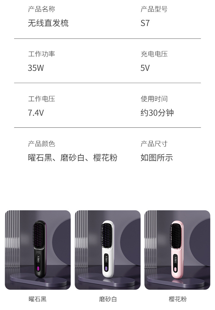 [Расческа для выпрямления волос S7] Перезаряжаемая, 4000 мАч + Белый; [S7 Расческа для выпрямления волос] Перезаряжаемая, 4000 мАч + Черный; [S7 Расческа для выпрямления волос] Перезаряжаемая, 4000 мАч + Розовый; [S7 Расческа для выпрямления волос] Перезаряжаемая, 4000 мАч + Синий; Модель с подключением [выпрямляющая расческа S7] Жемчужно-белый; Модель с подключением [Расческа для выпрямления волос S7] Звездный черный; Модель с подключением [Расческа для выпрямления волос S7] Вишнево-розовый цветок; Модель с подключением [выпрямляющая расческа S7] небесно-голубая