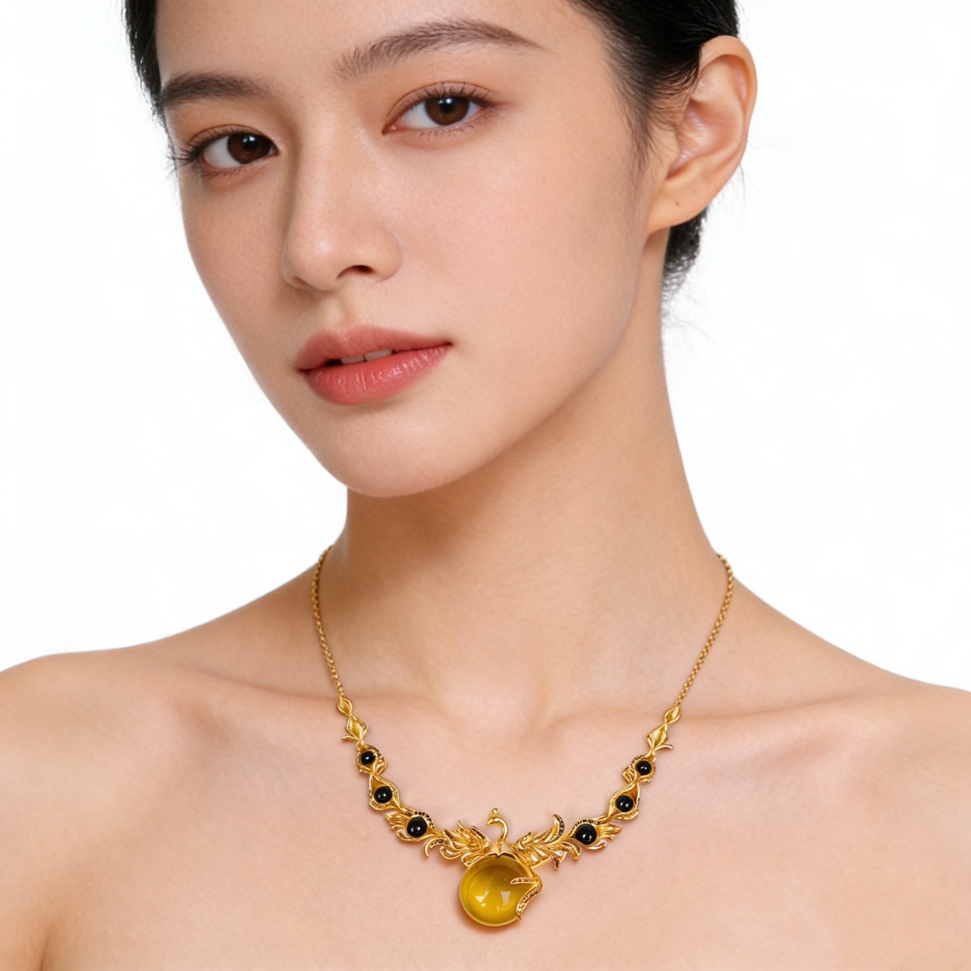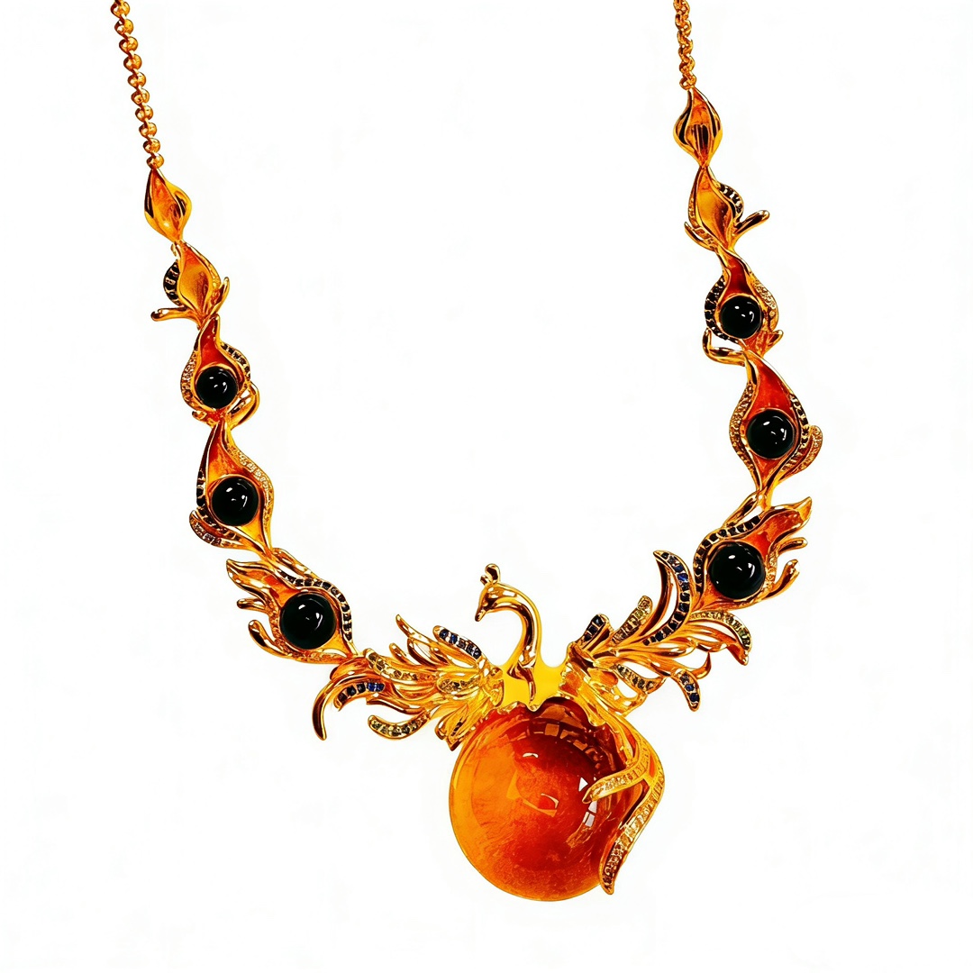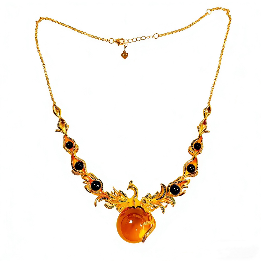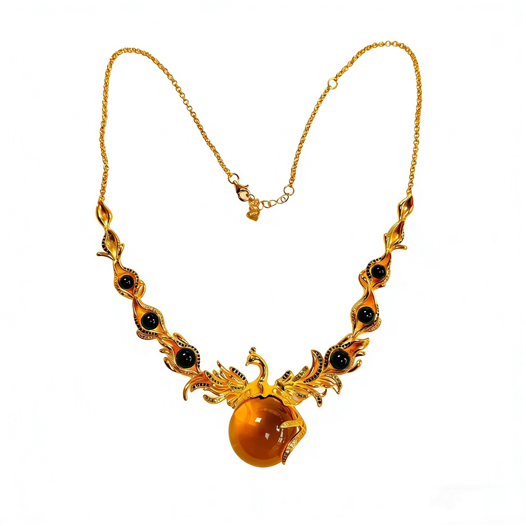 Серебряное ожерелье в виде костюма Янтарного Феникса