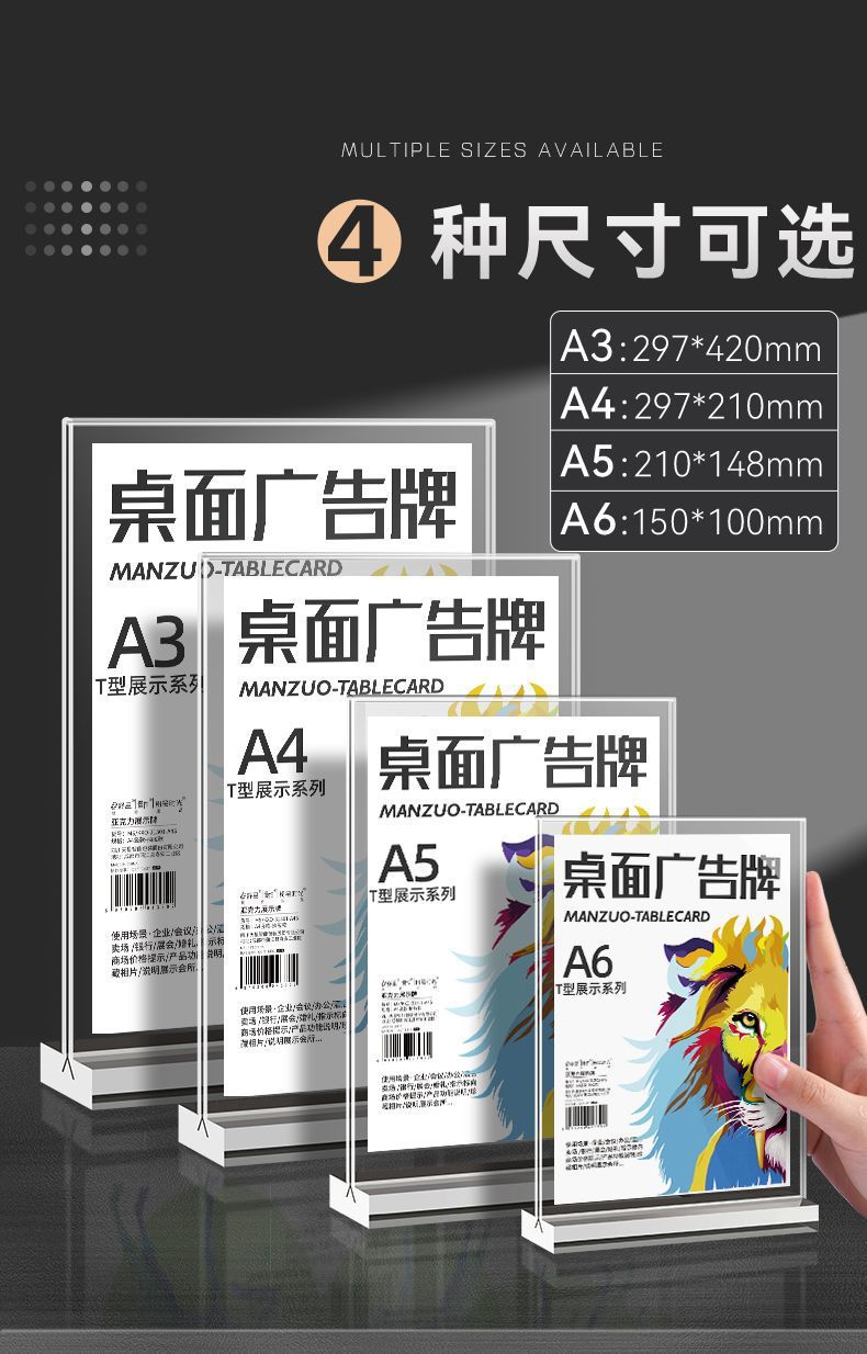Акриловая карта для дисплея A4, настольная карта, настольное меню, прайс-лист, подставка, рекламный щит, настольная табличка A5, размещение настольной карты