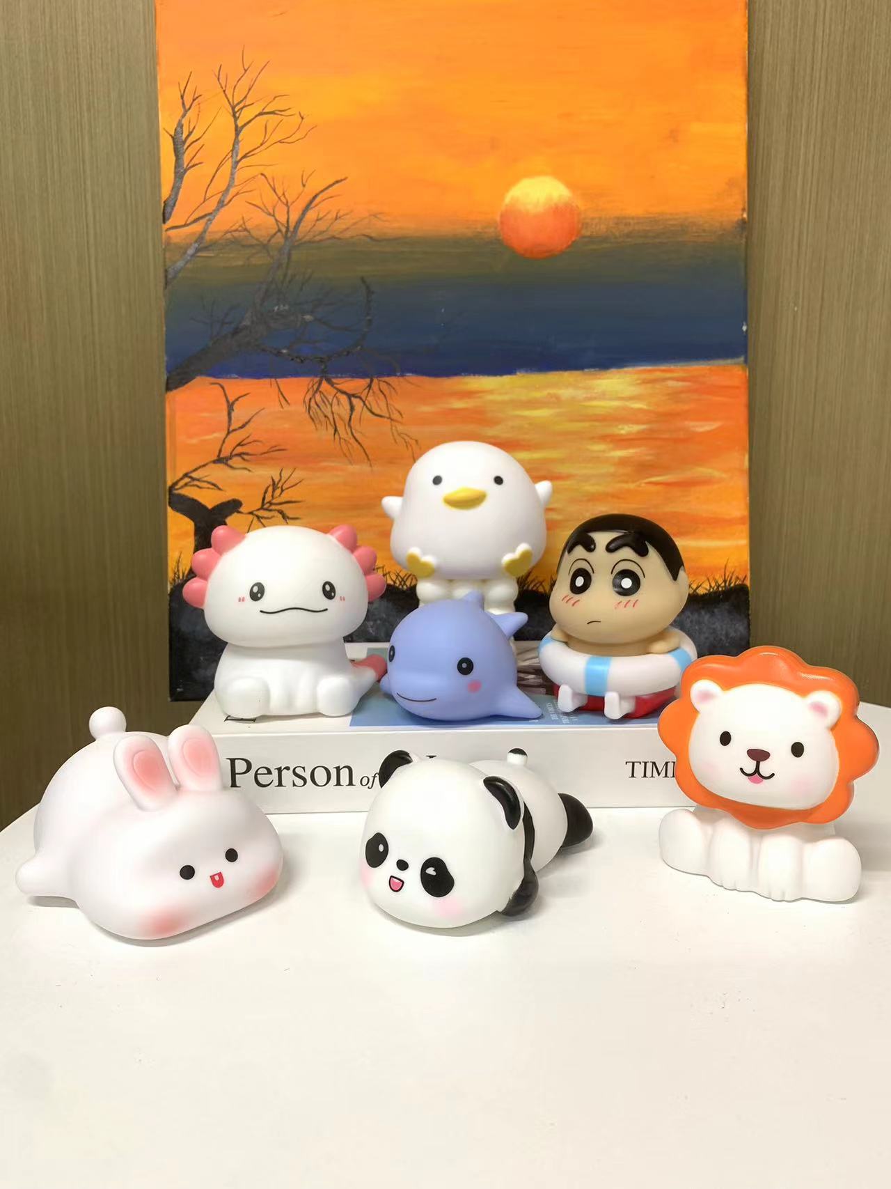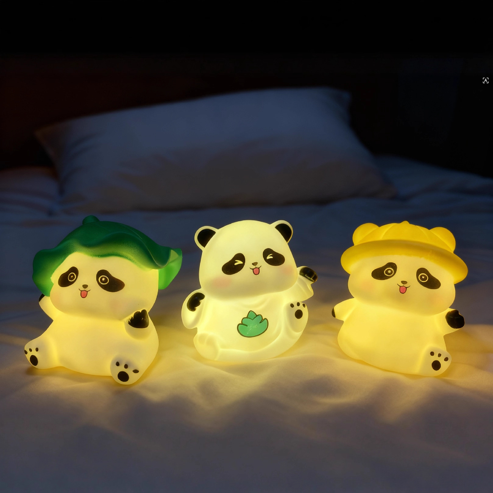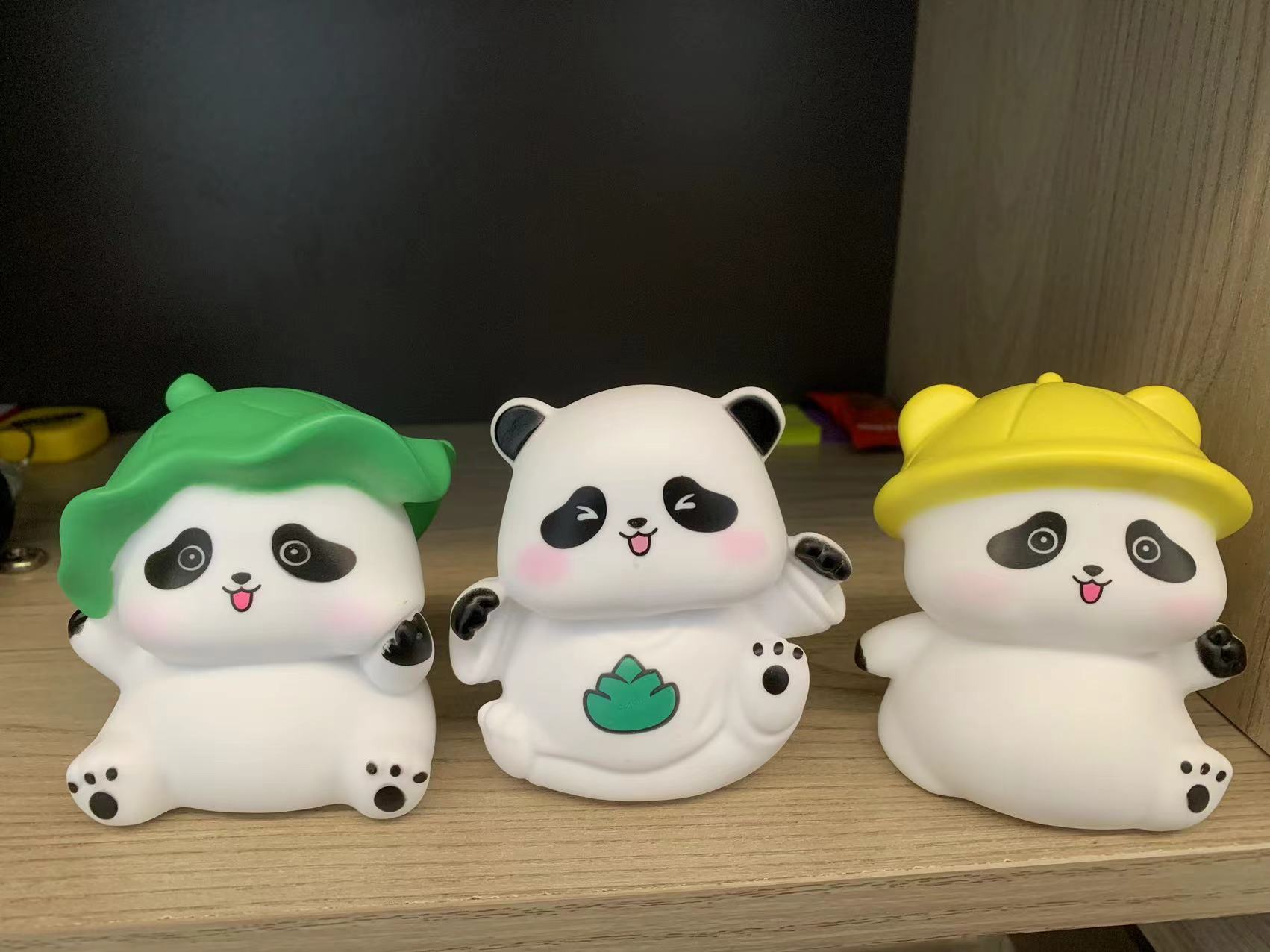 Виниловая лежащая панда-с подсветкой; Виниловая сидящая панда-с подсветкой; Виниловая панда из бамбуковых побегов с подсветкой; Виниловая панда в виде листьев лотоса с подсветкой; Виниловая желтая шапка панды-с подсветкой