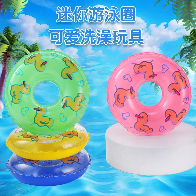 Дети играют в ванне маленькие игрушки мини маленький плавательный круг маленький желтый утенок аксессуары молочный чай магазин пончик оптовая продажа