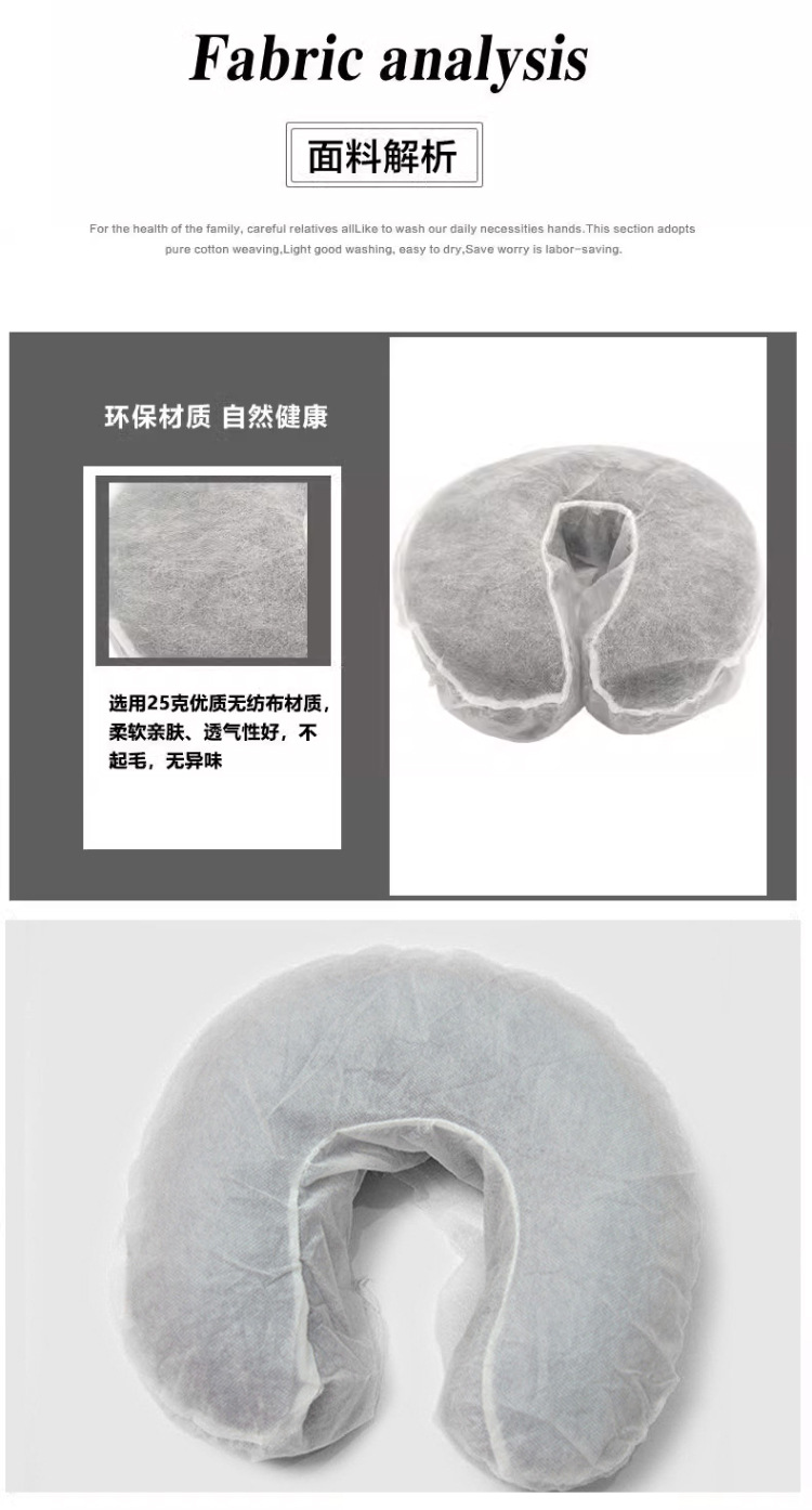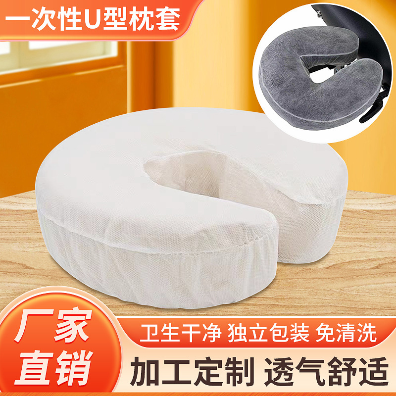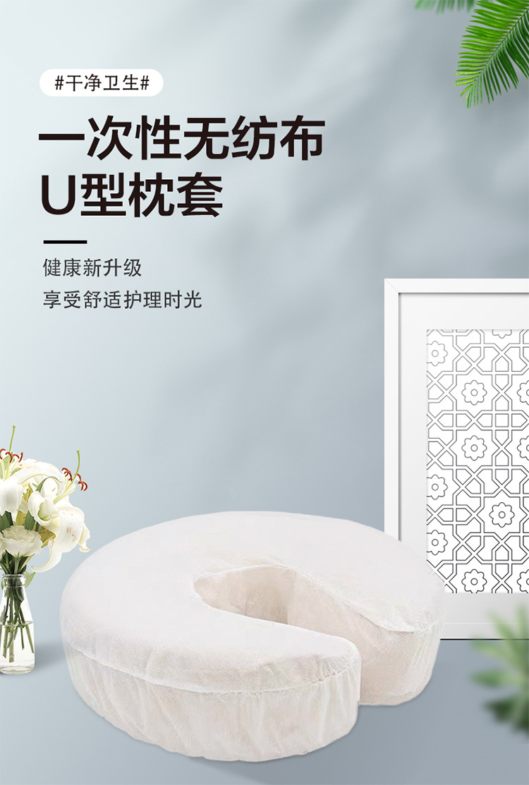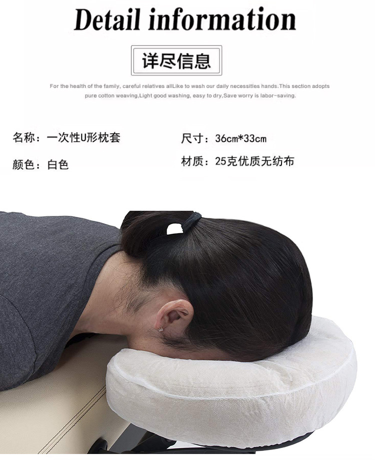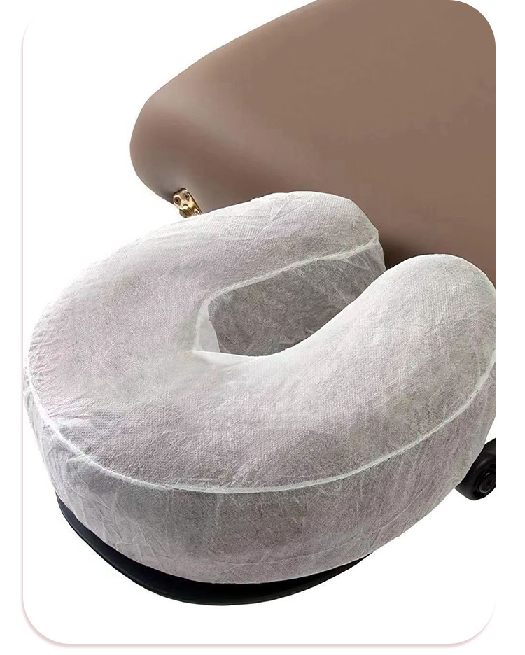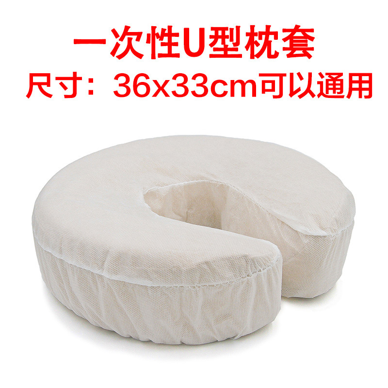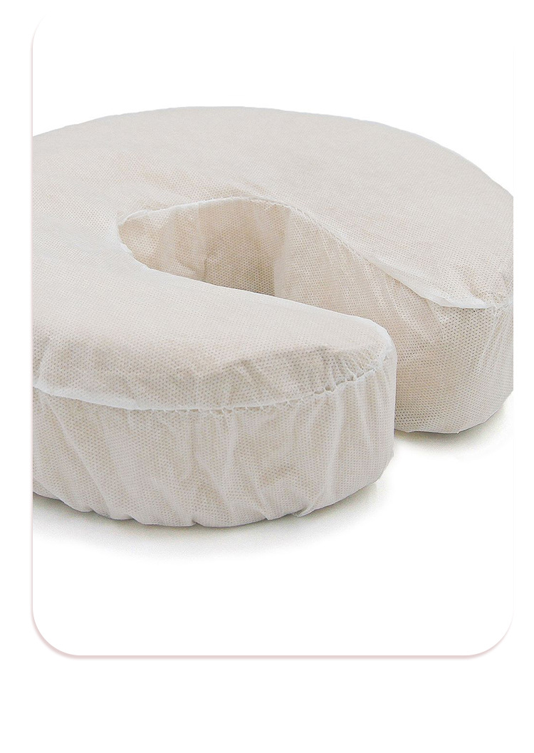Одноразовая U-образная наволочка с дышащей эластичной лентой, резинкой, отверстием для подголовника косметической кушетки, из нетканого материала.