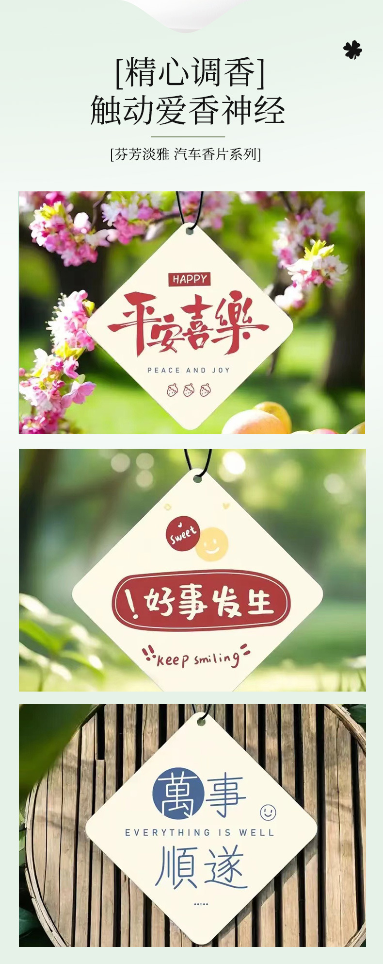 Ароматический кулон для автомобиля "Мир и радость" с текстом "Хорошие вещи случаются", ромбовидный ароматический кулон для автомобиля на заказ