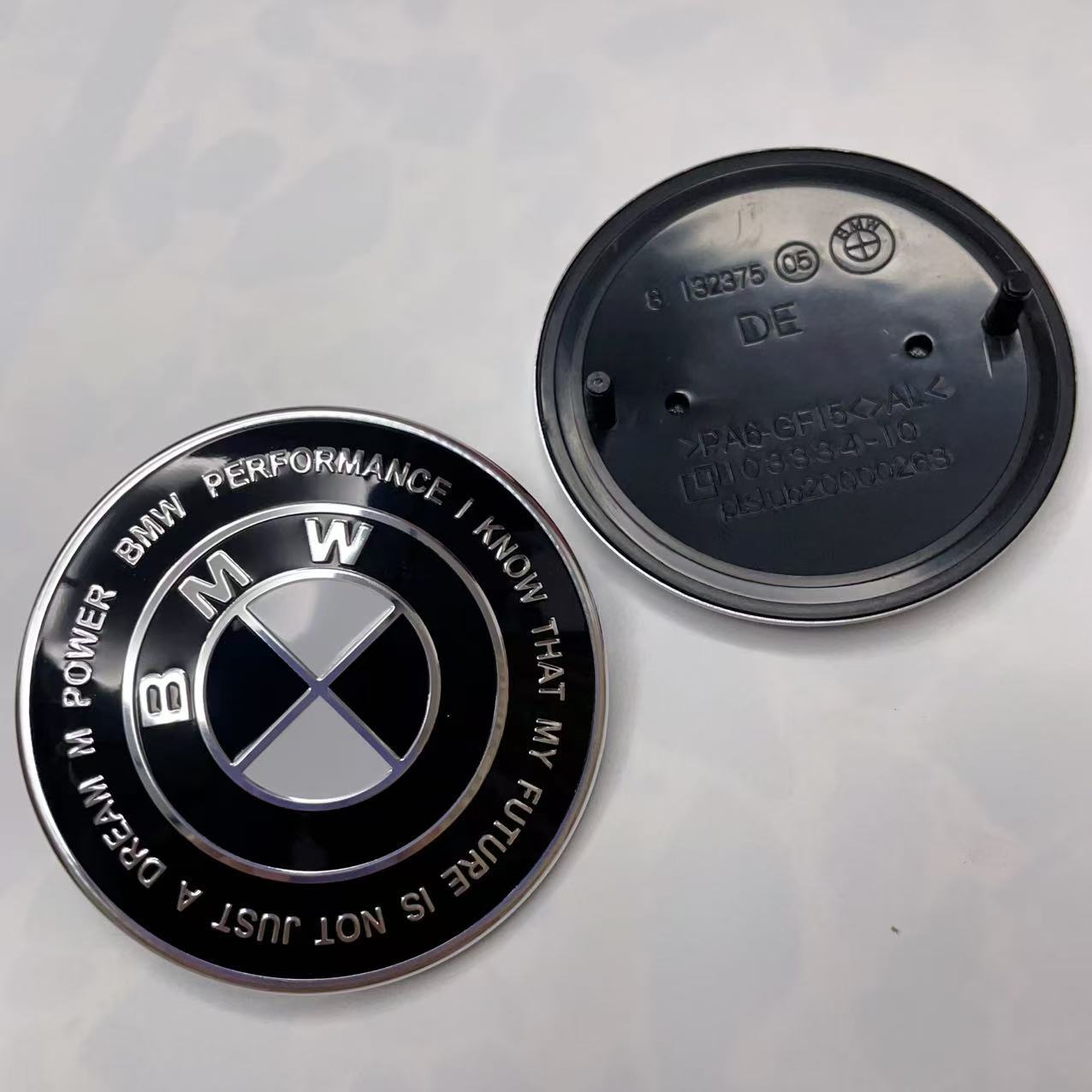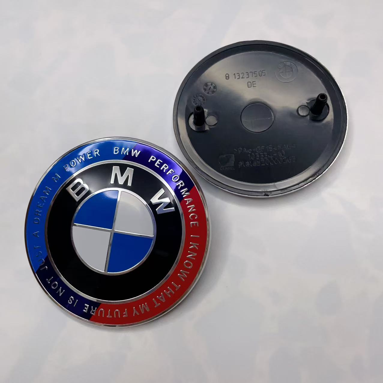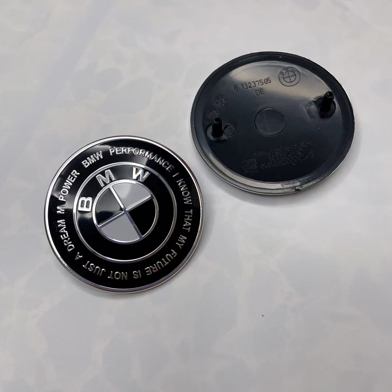 Подходит для переднего и заднего логотипа автомобиля BMW, 50-летие/брендовый/синий и белый/тол, черный и белый/черный капот 68/56 мм.