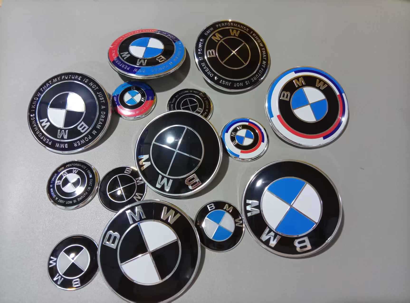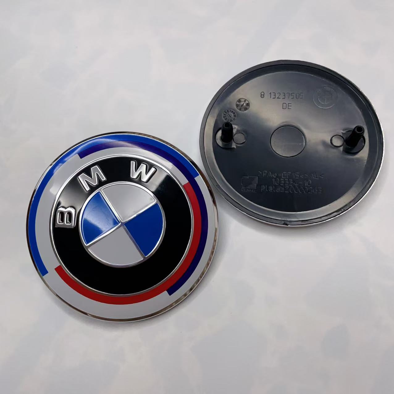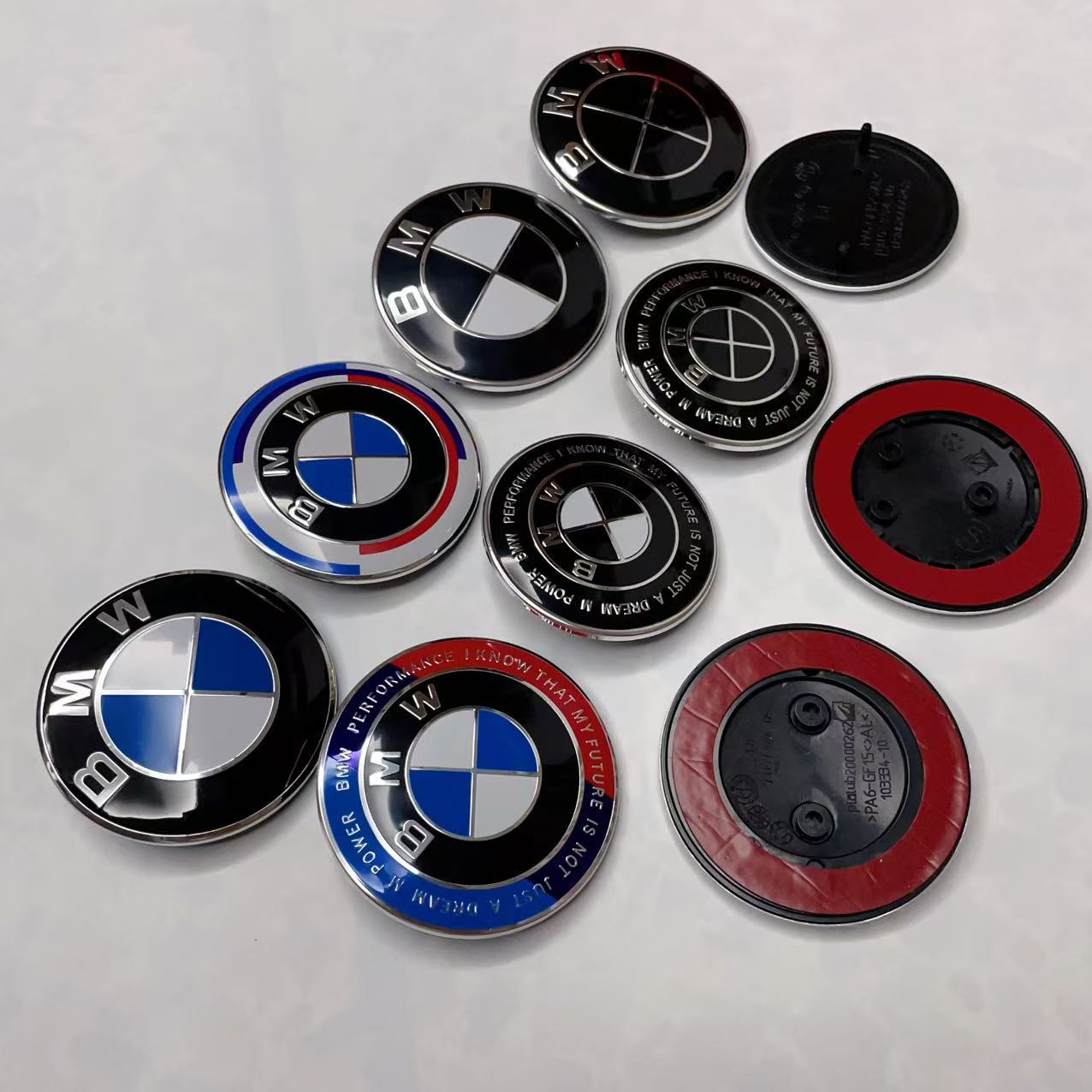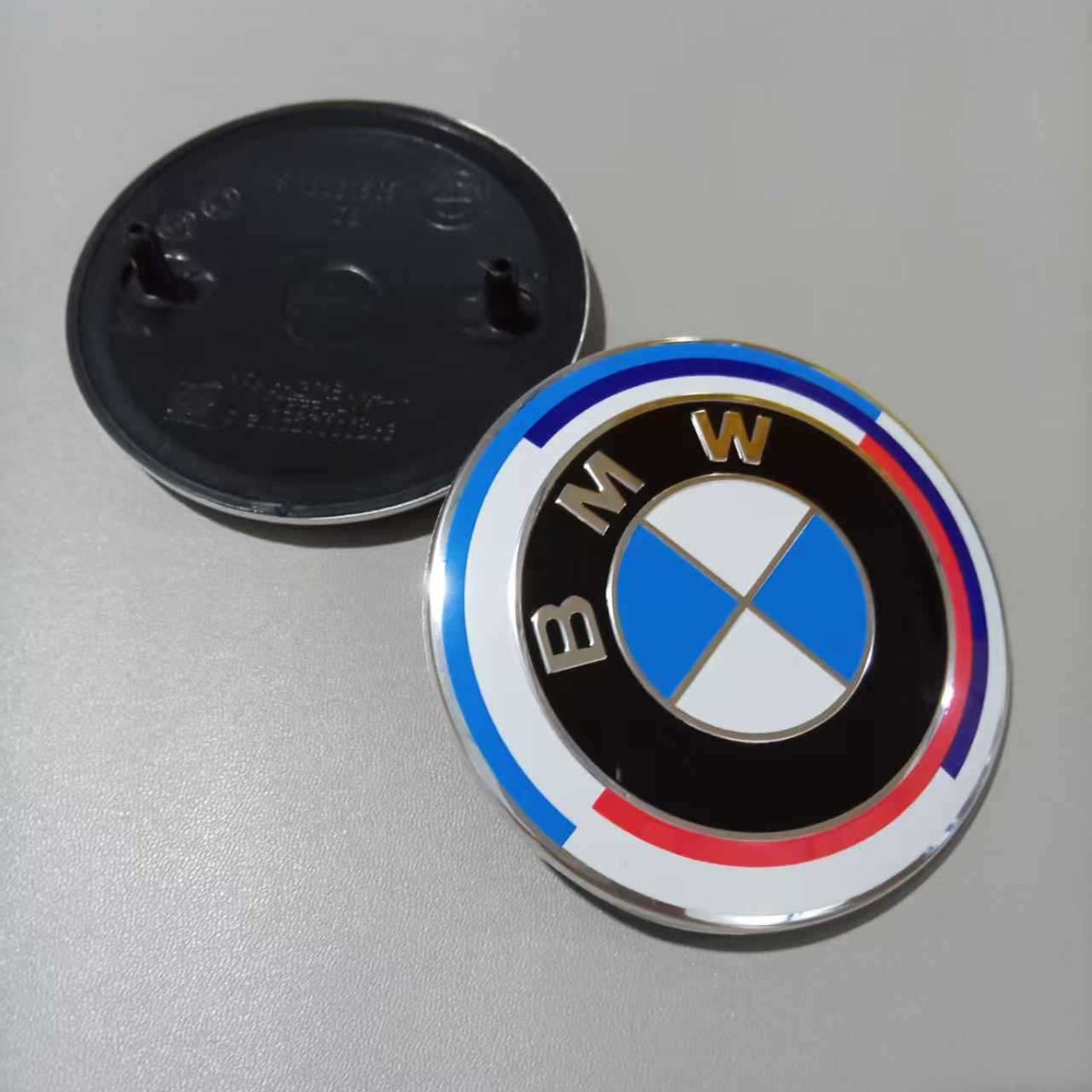 Подходит для переднего и заднего логотипа автомобиля BMW, 50-летие/брендовый/синий и белый/тол, черный и белый/черный капот 68/56 мм.