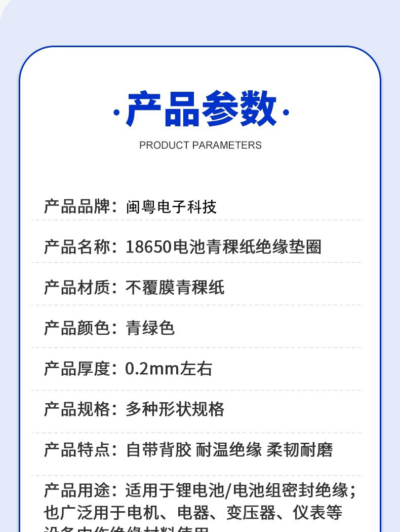 东莞市闽粤电子科技有限公司专业生产青稞纸绝缘垫片模切,异形青稞纸聚脂薄膜经高温青壳纸, 是一种氟塑加工的纸制品。表面颜色青黑色,有较强的拉伸强度,纵向及横向弯曲,耐温于130℃,耐电压4000伏,不起泡,不流胶,适用于电器、漆包线、变压器绝缘保护。特点:有良好的绝缘性、柔韧性、耐水、耐磨、耐油脂、耐老化,很好的堵间隙材料。(腹膜的)一般是机电产品上使用的。多用于硬质金属件间接合中的隔垫。如家用吊扇的扇翼与扇头之间用螺丝紧固中间隔一层青壳纸。车床的主轴压环与齿轮箱之间夹有青壳纸。防火阻燃青壳纸青稞纸电绝缘纸0.15mm-0.25mm。0.15mm-0.25mm防火阻燃青稞纸绝缘纸材料。青壳纸别名青稞纸,是青色薄型电绝缘纸板的俗称。由木质纤维或掺入棉纤维的混合制浆,经一定的工艺制造而成,青壳纸-了木浆绝缘纸良好的绝缘性能和聚酯薄膜良好的介电强度。