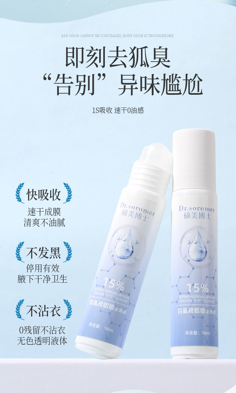 Жидкость для роликовых шариков с тетраклоргидроксиалюминием и цирконием доктора Шуомей мягкая и не раздражающая, стойкий аромат, универсальные роликовые шарики для всего тела, антиперспирант.