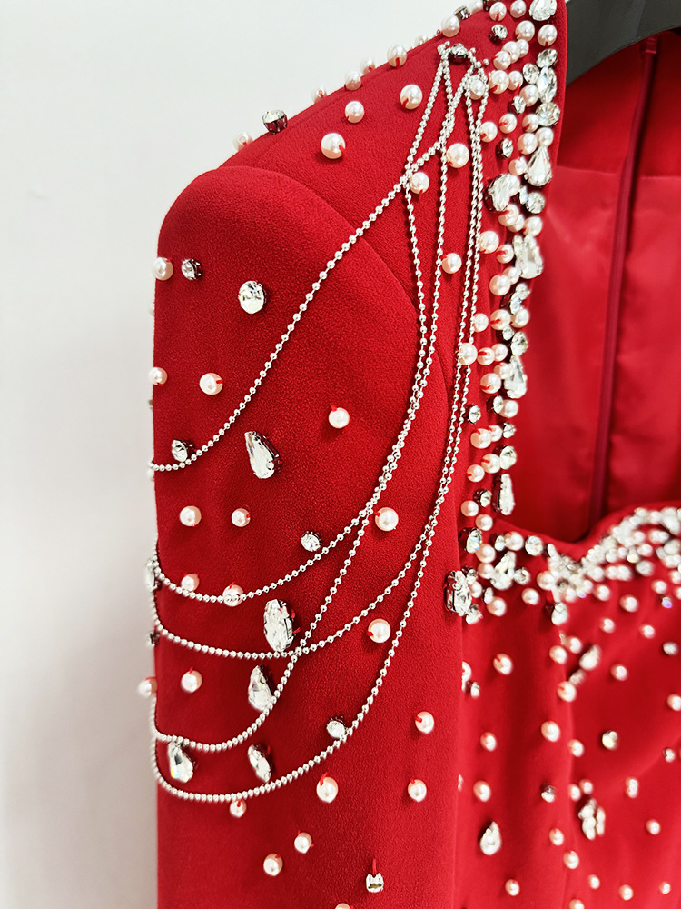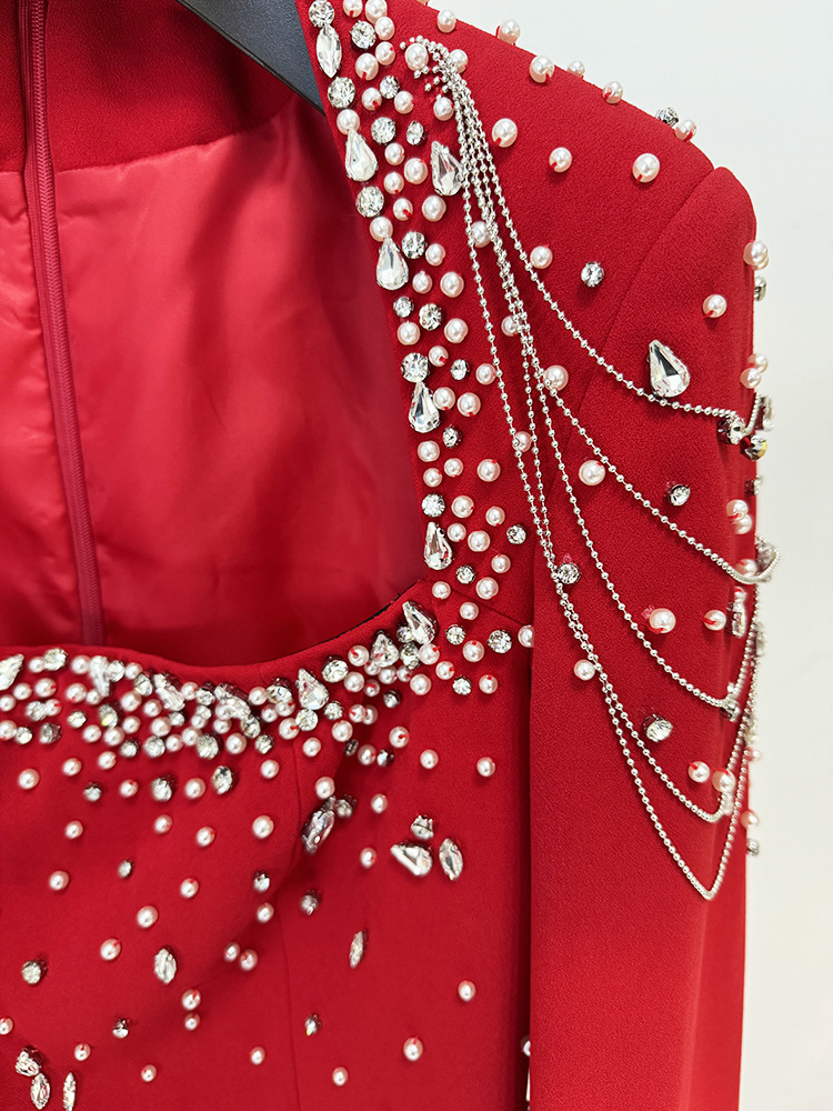 Пятно европейское и американское звездное вечернее платье 2025 нового тяжелого промышленного бисера