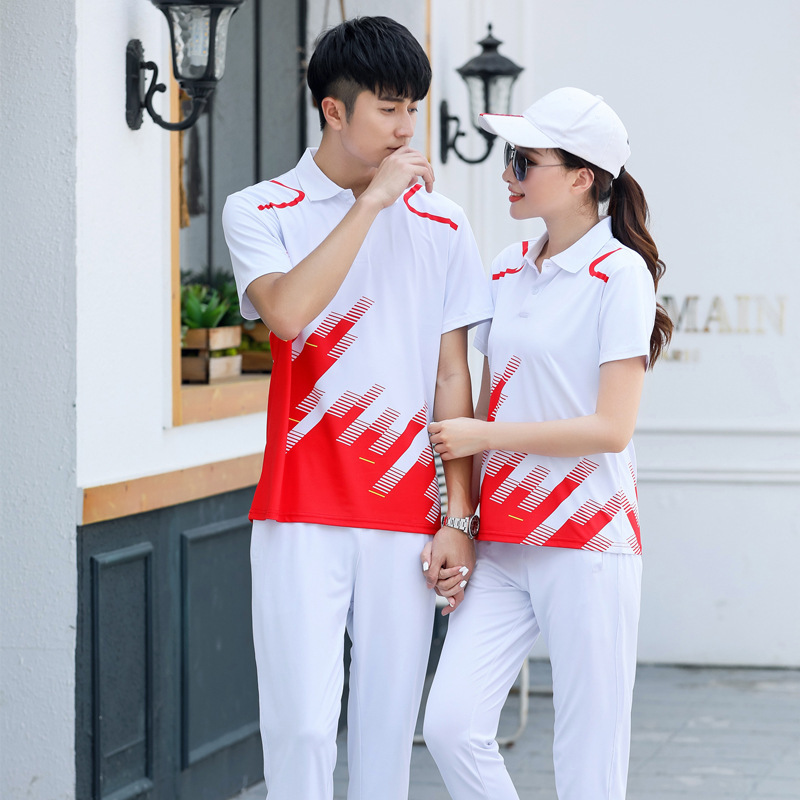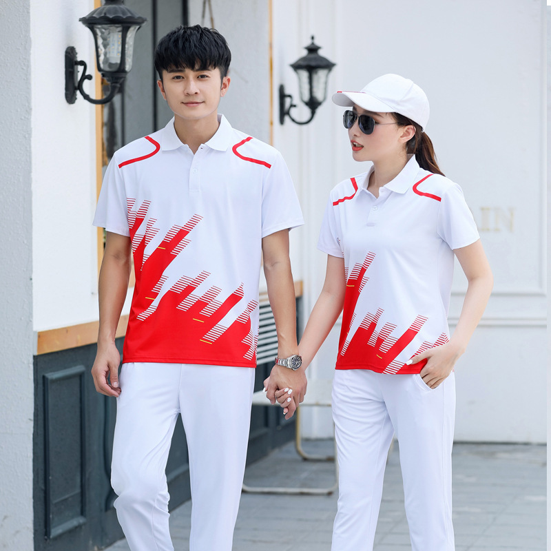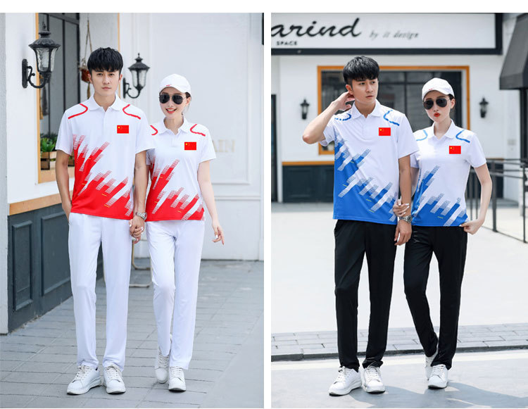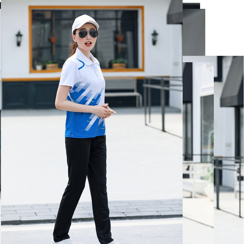 Футболка с короткими рукавами и открытым воротником для мужчин и женщин, комплект из двух предметов для студентов квадратных танцев, спортивная одежда для бега и фитнеса.