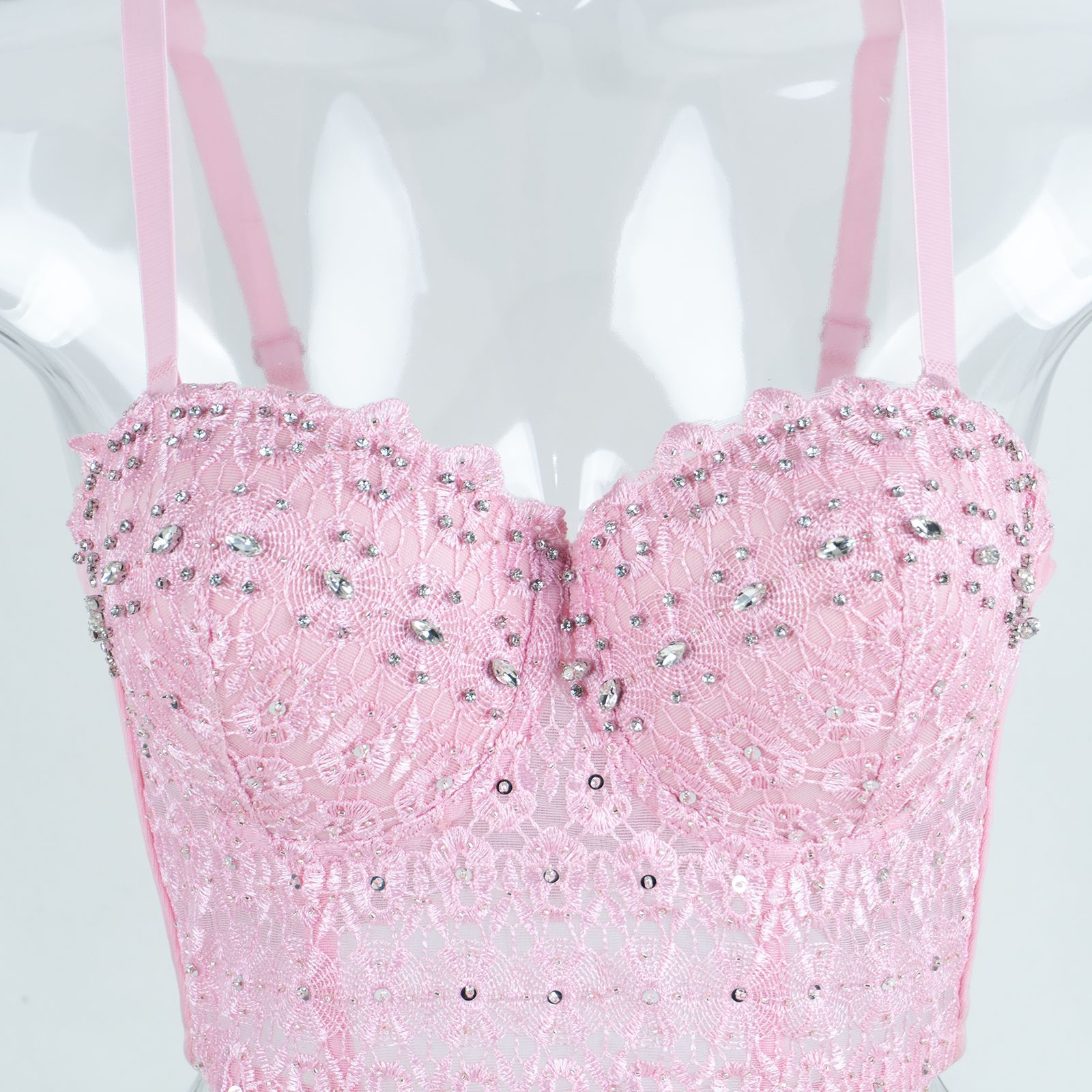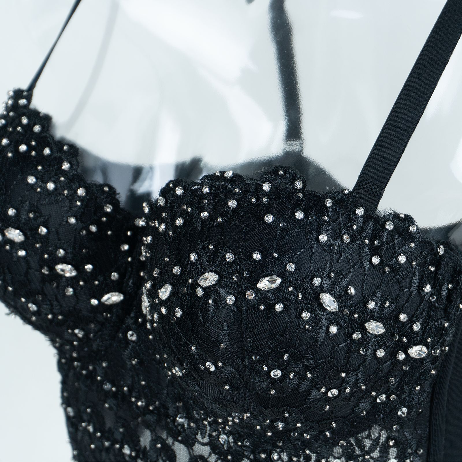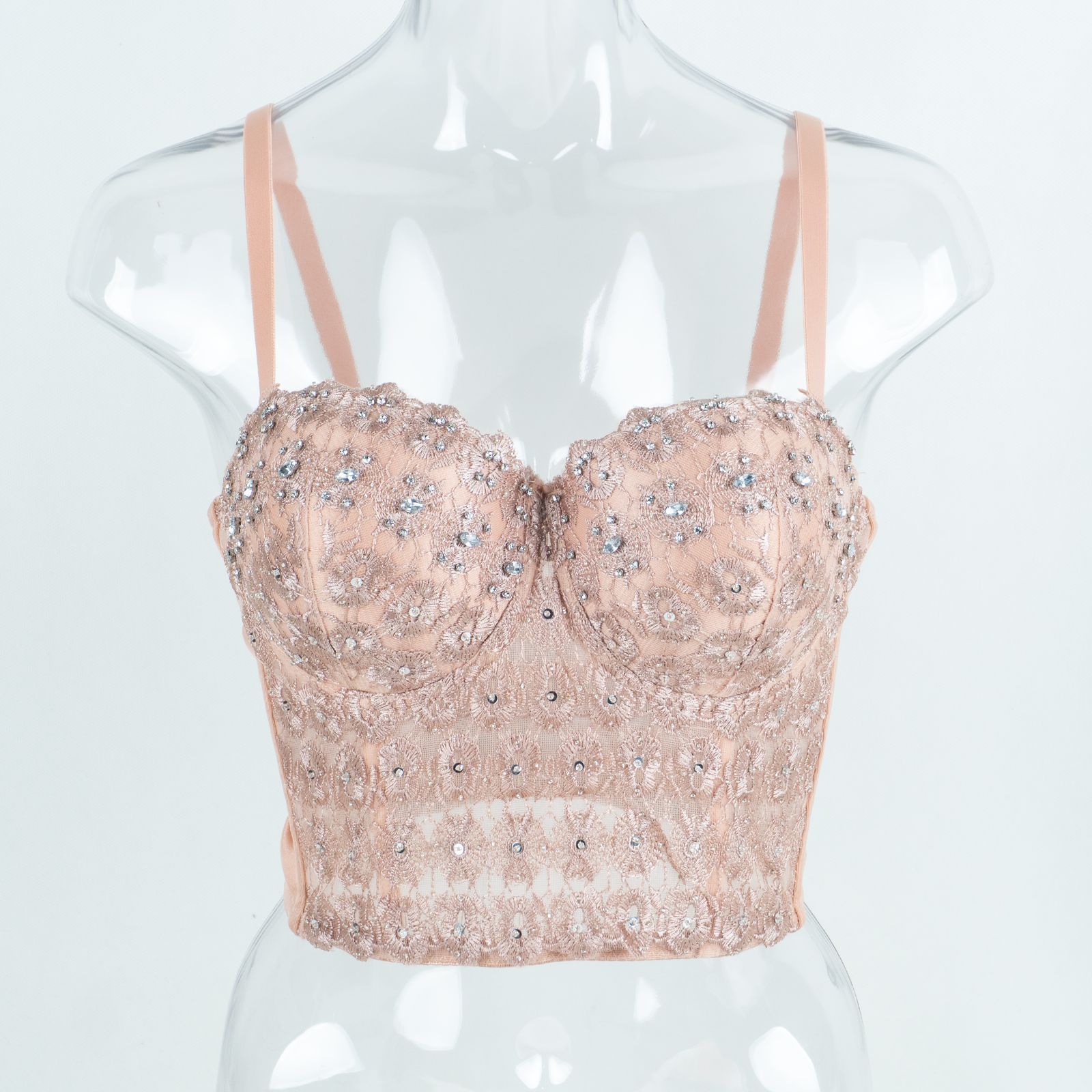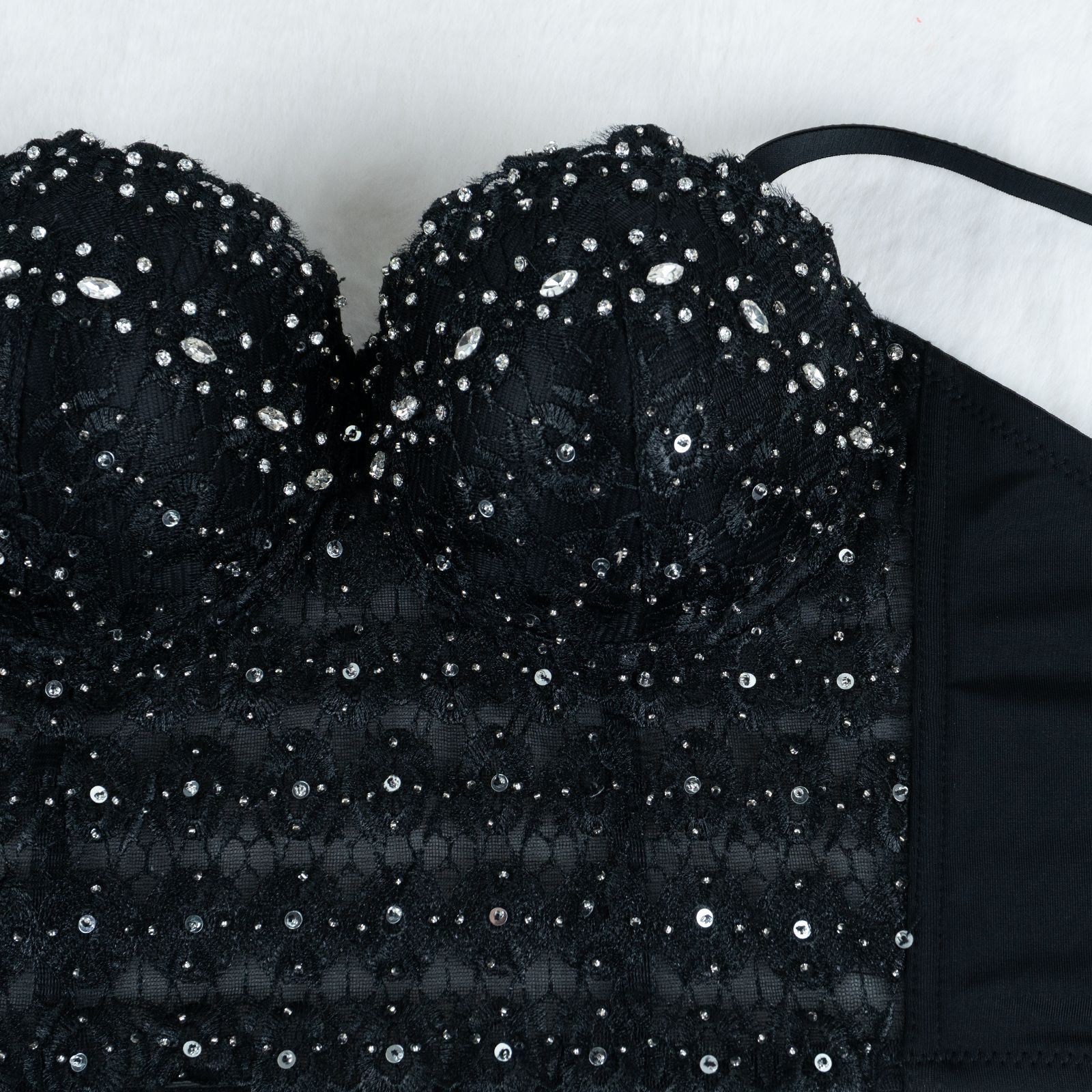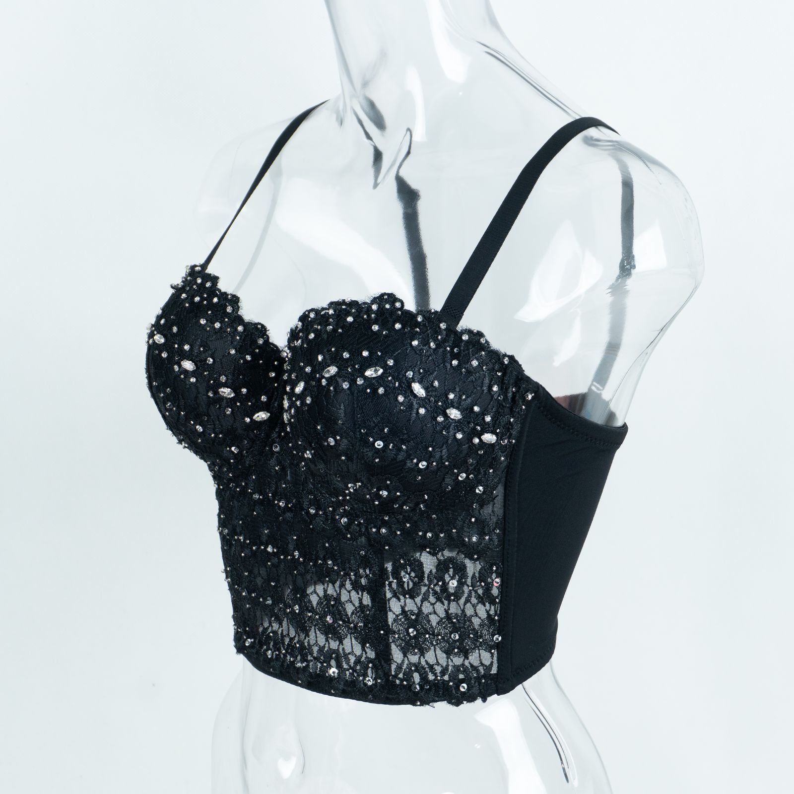 Кружевной топ Meihua с камнями и бусинами, короткий сексуальный облегающий корсет для танца живота с каркасом-бюстгальтером.