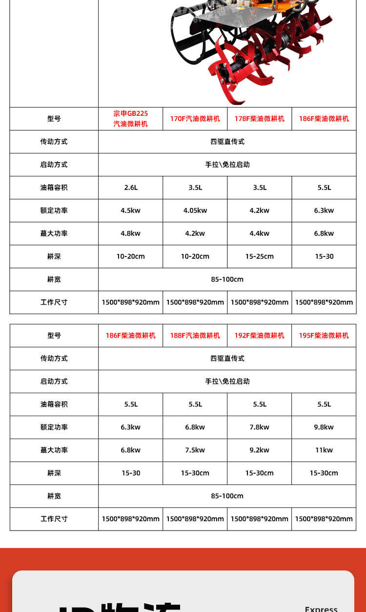 170F повторяет бензиновый тяжелый полноприводный автомобиль (7,5 л.с.); Zongshen GB225 бензиновый тяжелый полноприводный автомобиль (4,5 кВт); 173F дизельный тяжелый полноприводный двигатель (6 лошадиных сил); Дизельный двигатель 178F, полный привод для тяжелых условий эксплуатации (7 лошадиных сил); 186F дизельный полноприводный полноприводный двигатель (10 лошадиных сил); 188F дизельный полноприводный полноприводный автомобиль (11 лошадиных сил); 192F дизельный полноприводный полноприводный автомобиль (12 лошадиных сил); 173F дизельный легкий полноприводный двигатель (6 лошадиных сил) с электростартером; 178F дизельный легкий полноприводный двигатель (7 л.с.) с электростартером; Дизельный двигатель 186F, полный привод на твердом грунте (10 лошадиных сил), электрический запуск; Дизельный двигатель 188F, полный привод на твердом грунте (11 лошадиных сил), электрический запуск; 192F дизельный полноприводный полноприводный двигатель (12 лошадиных сил), электростартер; 195F дизельный полноприводный полноприводный двигатель (15 лошадиных сил) с электростартером
