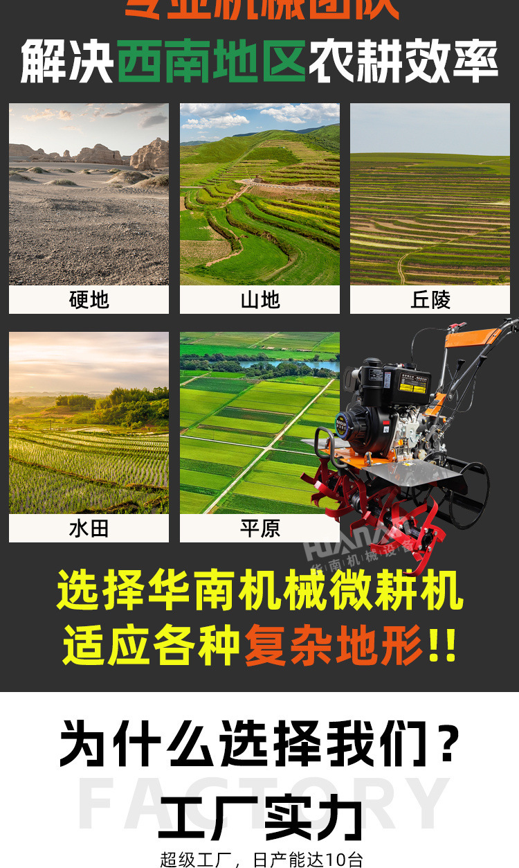 Многофункциональный горный роторный культиватор с прямым приводом, полным приводом, дизельным двигателем высокой мощности, производитель Чунцин.