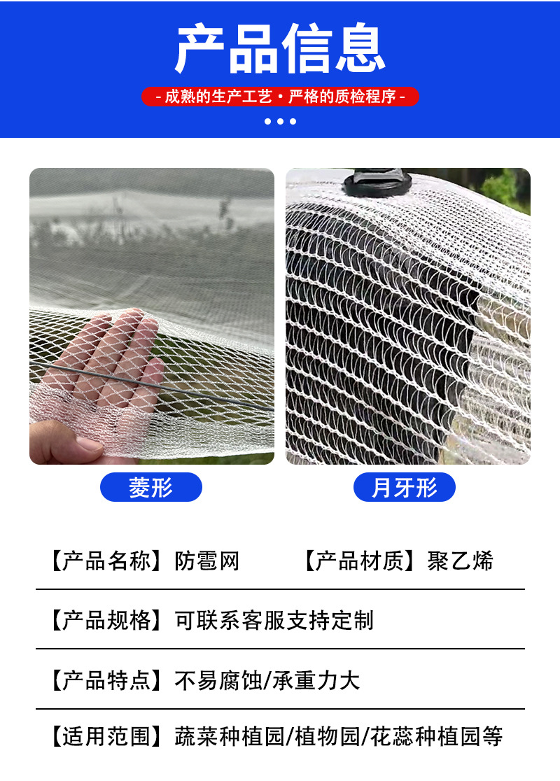 Сетка для защиты от града; Крестообразная сетка от града; Сетка от града Сетка от града Сетка от птиц Форма полумесяца
