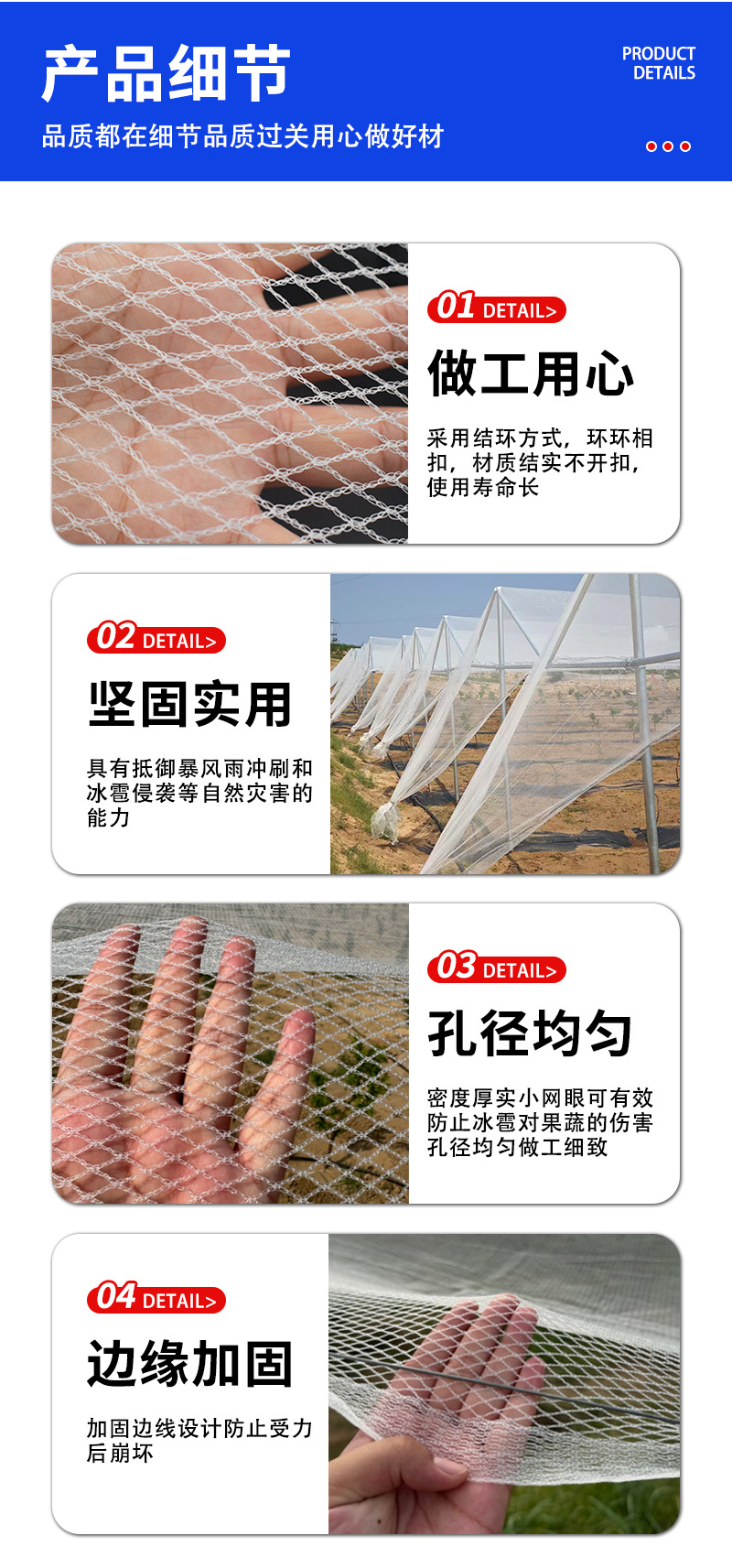 Поймайте падающий град, чтобы защитить ценные и уязвимые сельскохозяйственные культуры.противоптичный, легкий, ветронепроницаемый