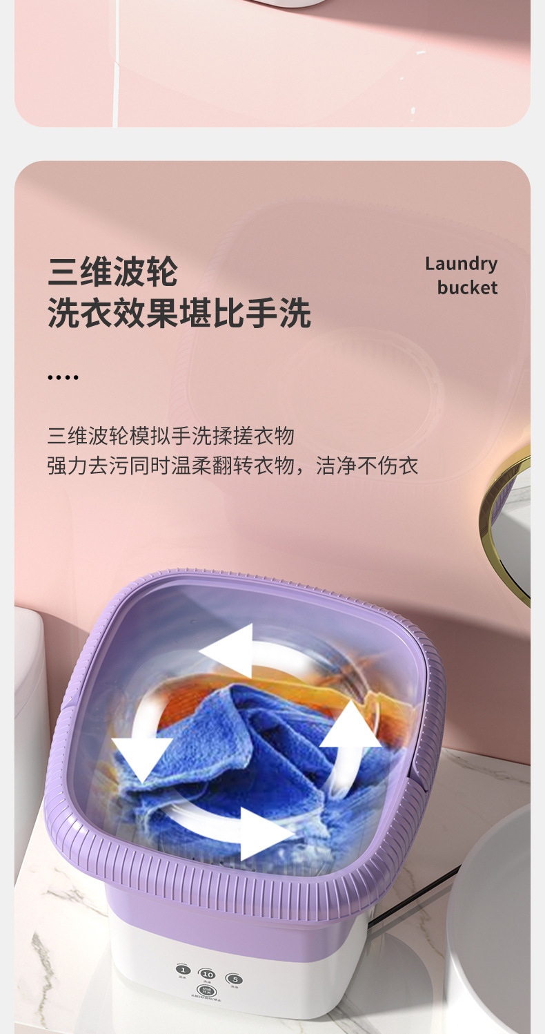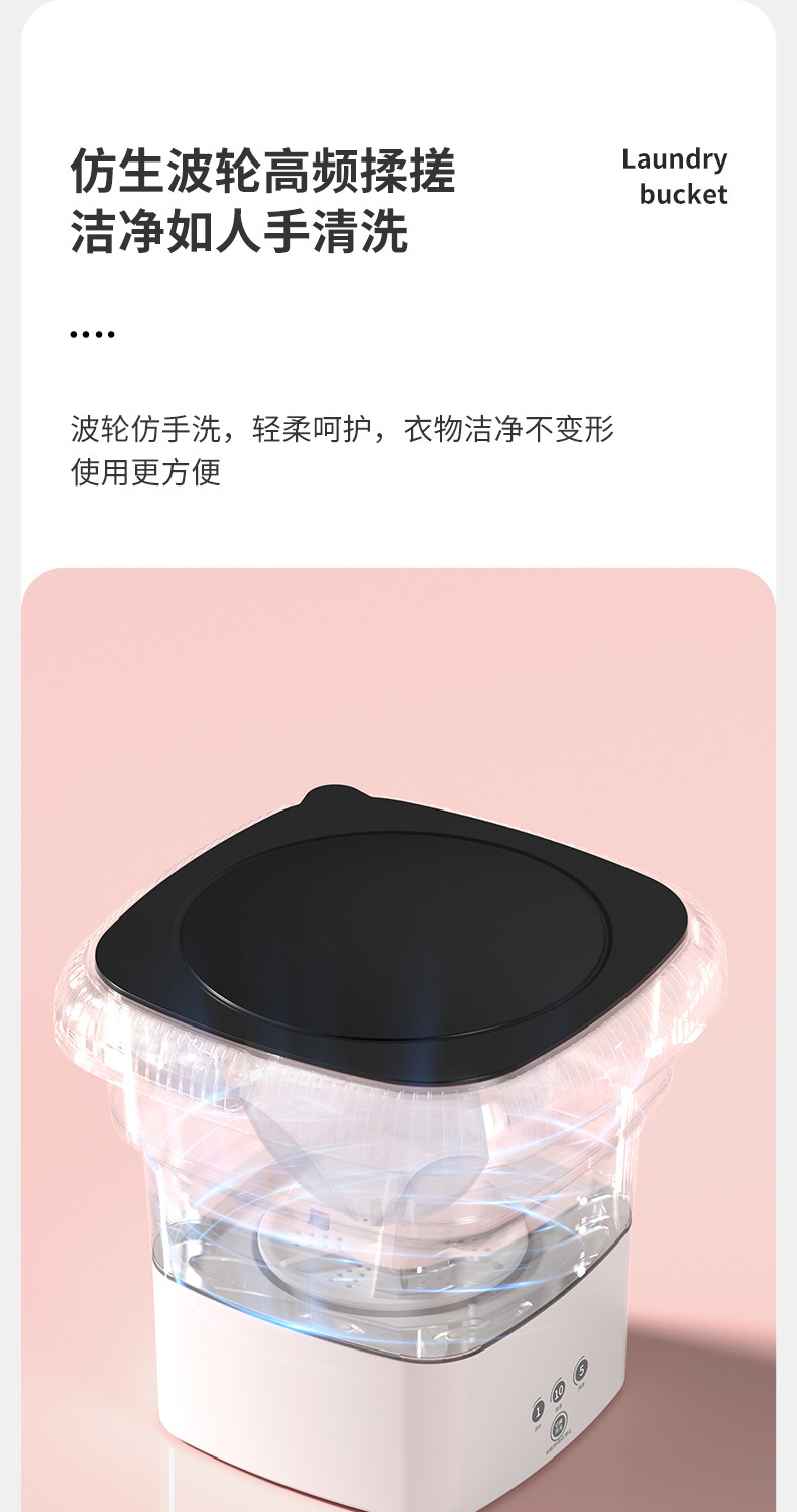 产品说明:迷你节能省水省电,一体式便携手把设计,移动收藏轻巧灵活,透明上盖设计,洗涤一目了然,波浪式洗涤道转盘,可顺/逆时针方向清洗。精致造型,迷你可爱,不占空间。