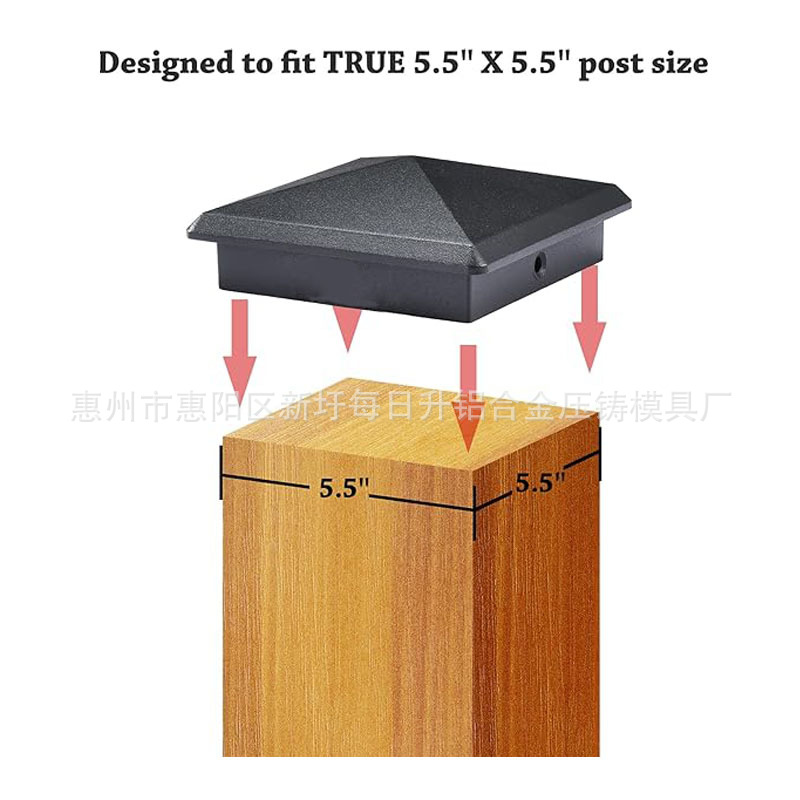 温馨提示:本公司是专业压铸工厂,仅生产OEM、ODM产品。5.5"x5.5"铝合金柱帽是公模产品, 可对外出售。首批订单起订量1000-3000个,生产交期10-30天,请咨询后下单