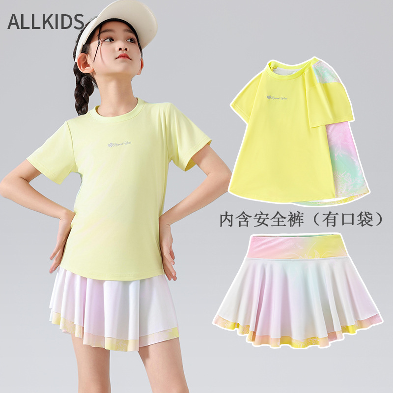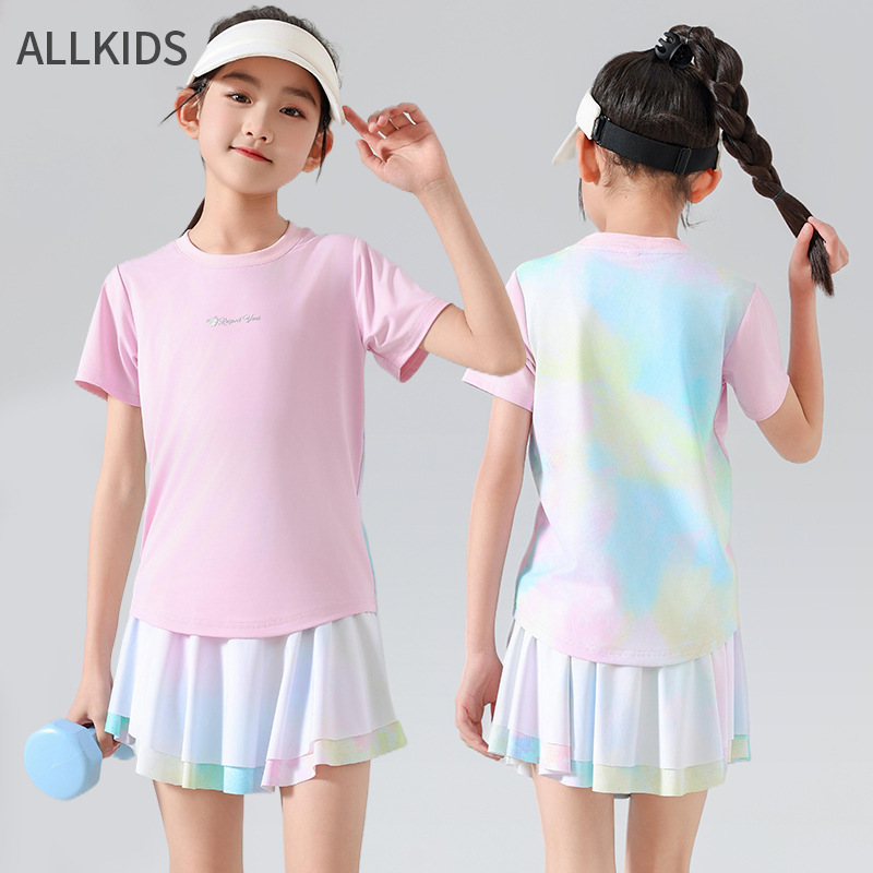 Футболка с короткими рукавами для девочек, 25 новых летних быстросохнущих эластичных, приятных для кожи спортивных повседневных топов с принтом, теннисная одежда с перьями