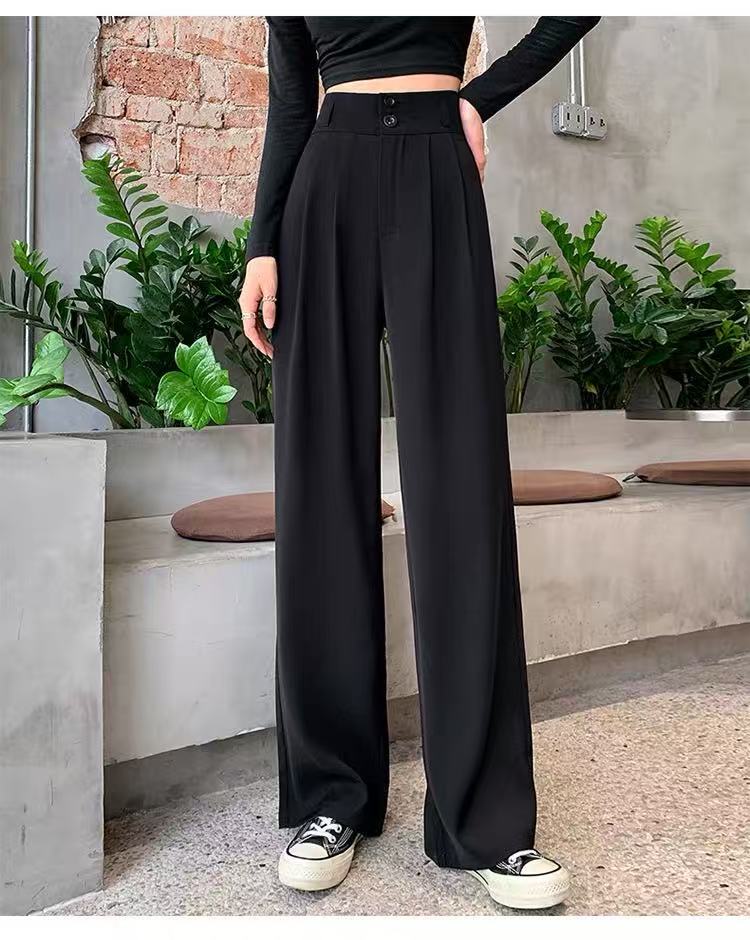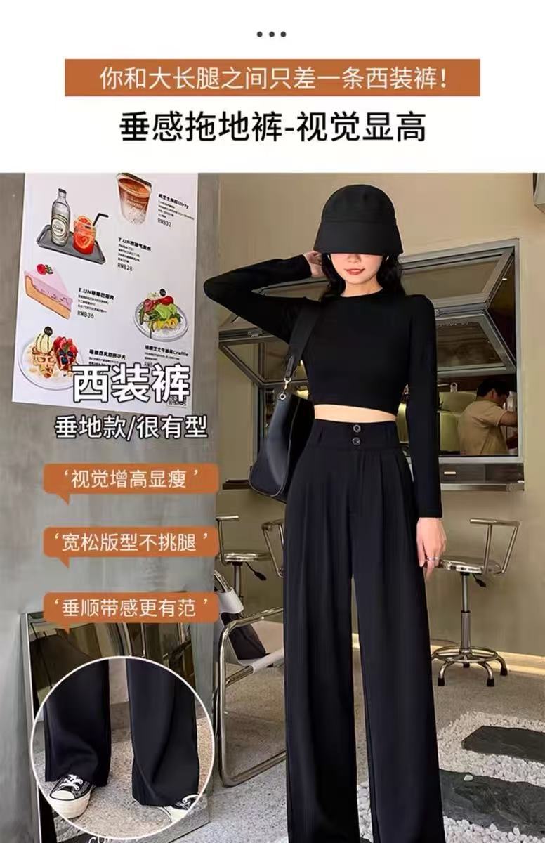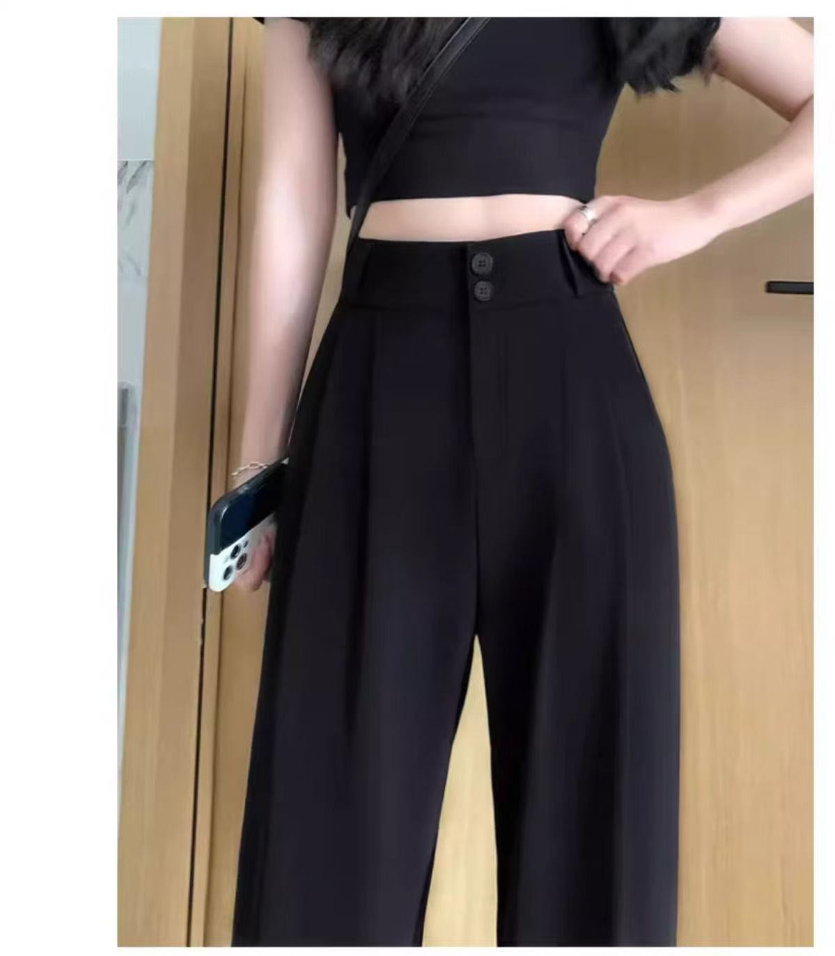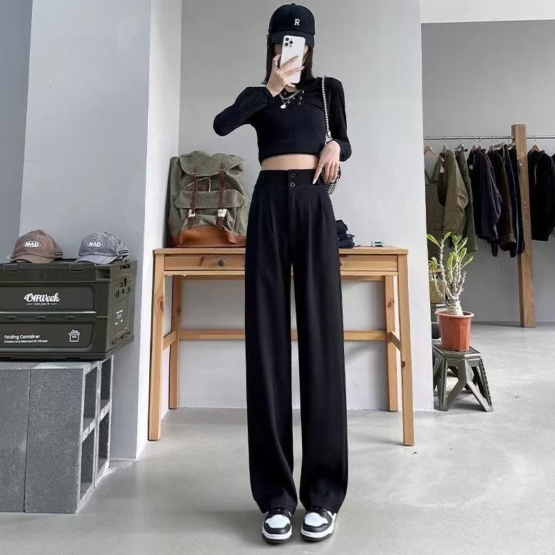 2025 Взрывная весна и лето новая женская узкая версия широкие брюки с тонкими черными брюками с высокой талией повседневные брюки женские