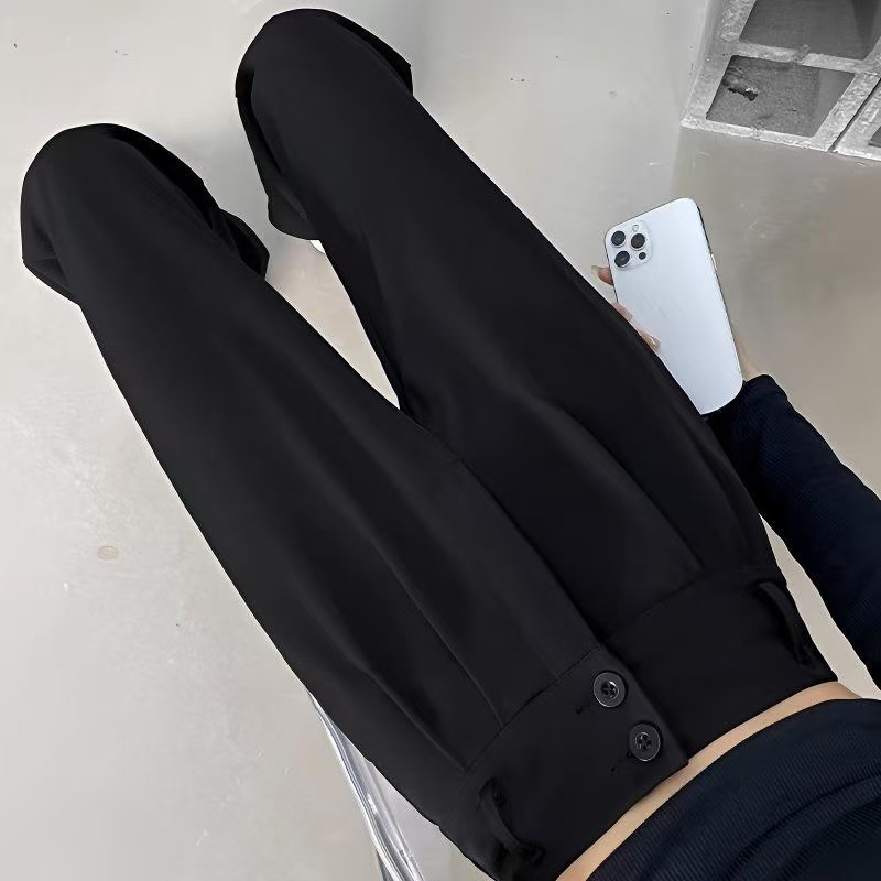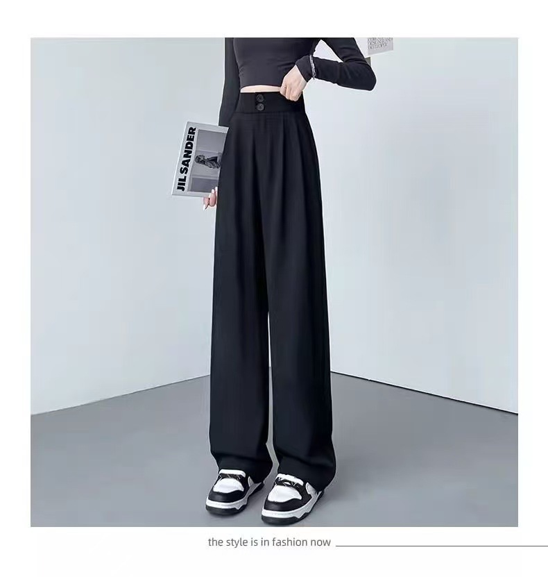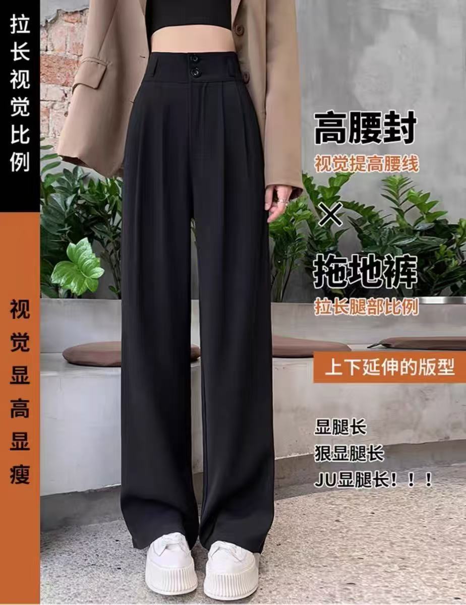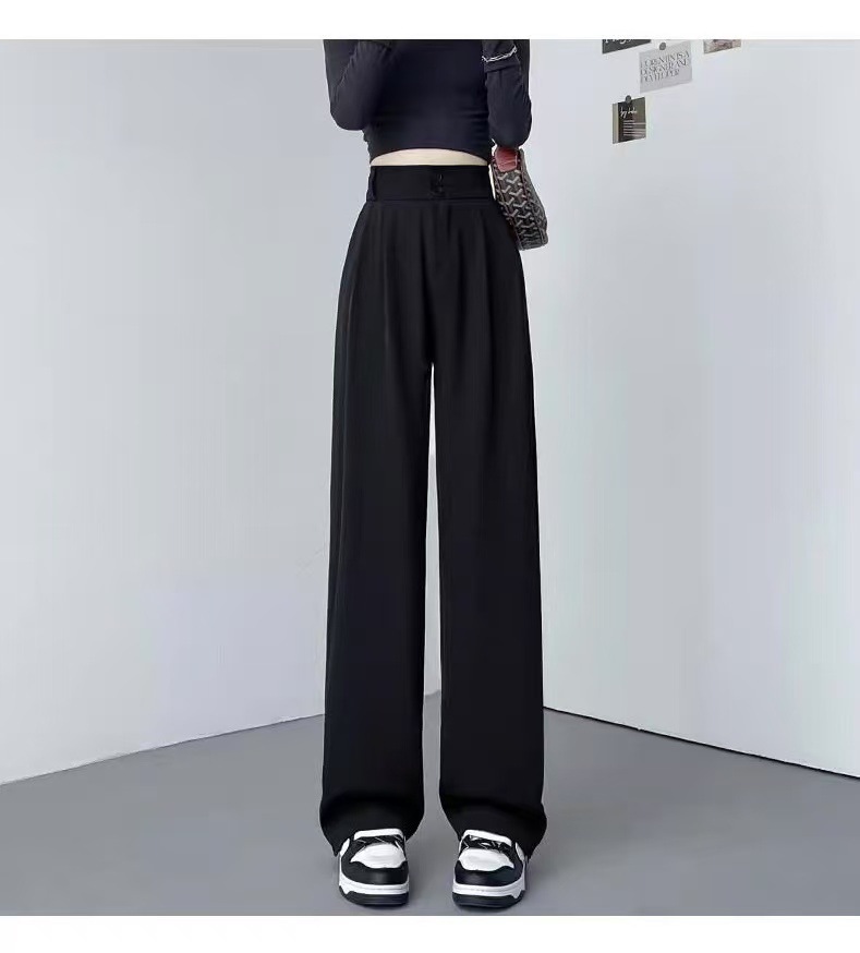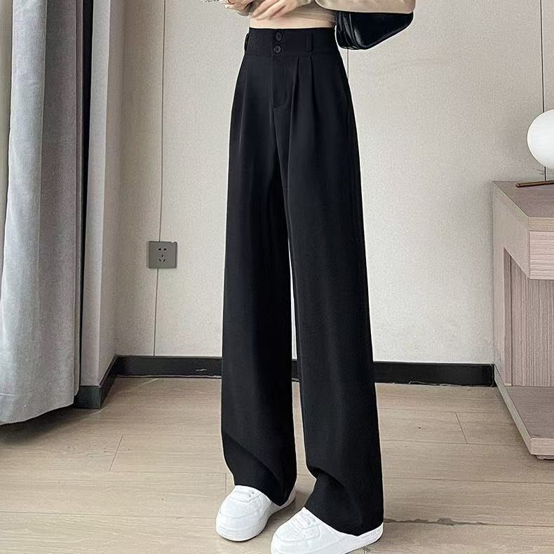 2025 Взрывная весна и лето новая женская узкая версия широкие брюки с тонкими черными брюками с высокой талией повседневные брюки женские