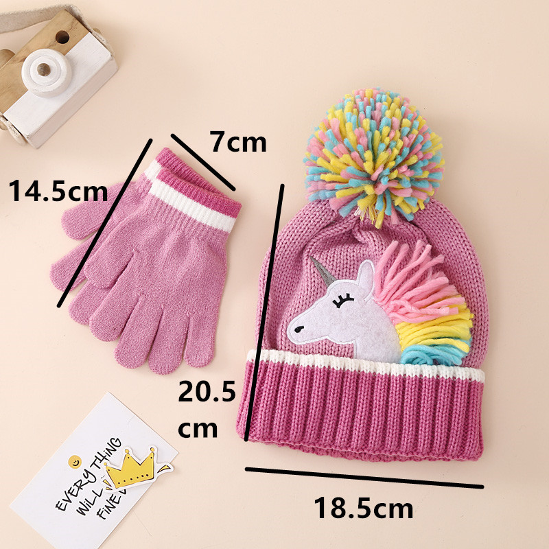Детский вязаный комплект шапка и варежки с единорогом, зимний теплый шерстяной набор для девочек