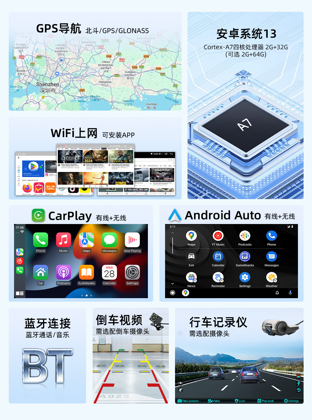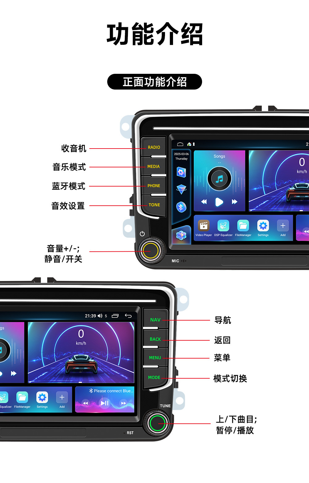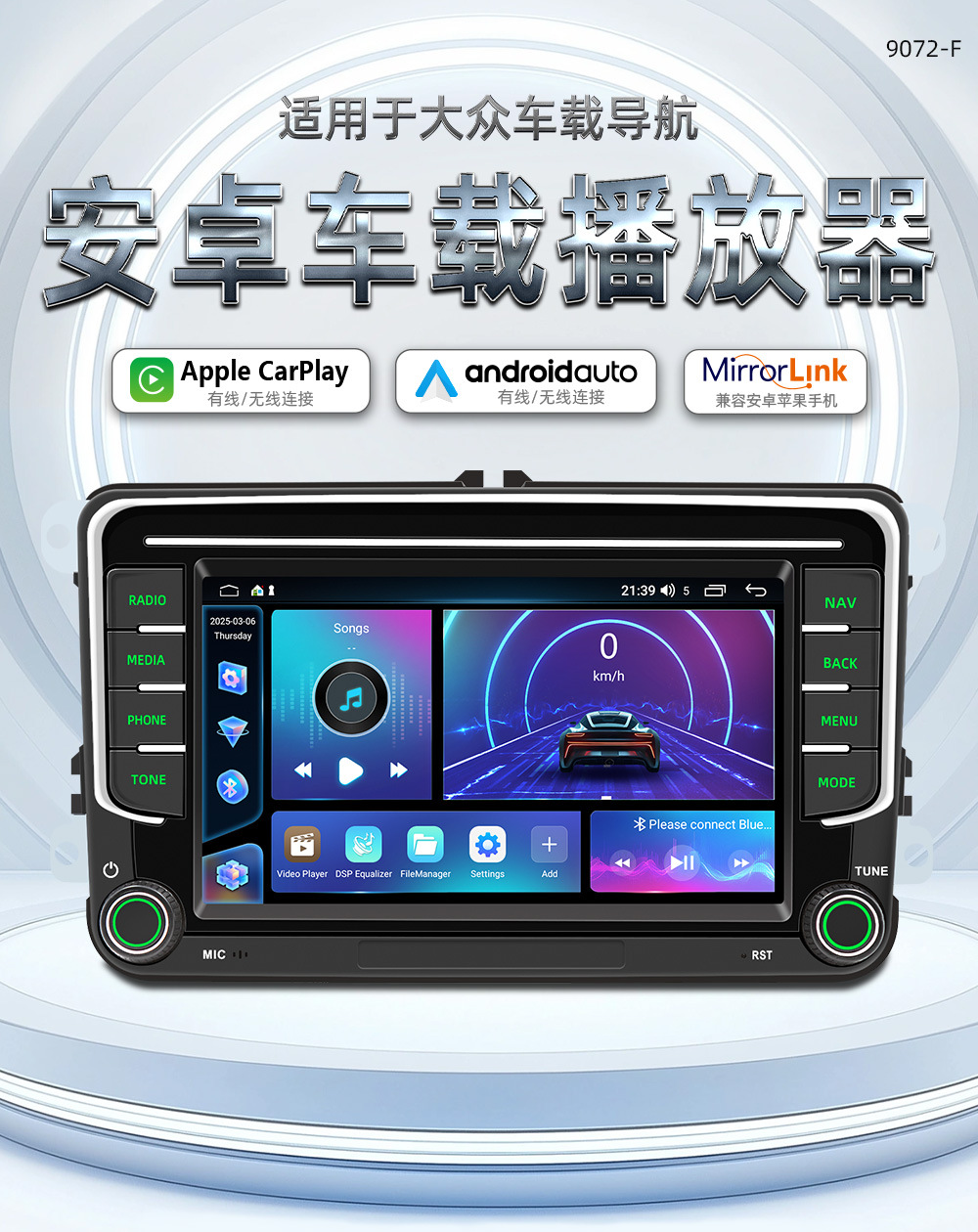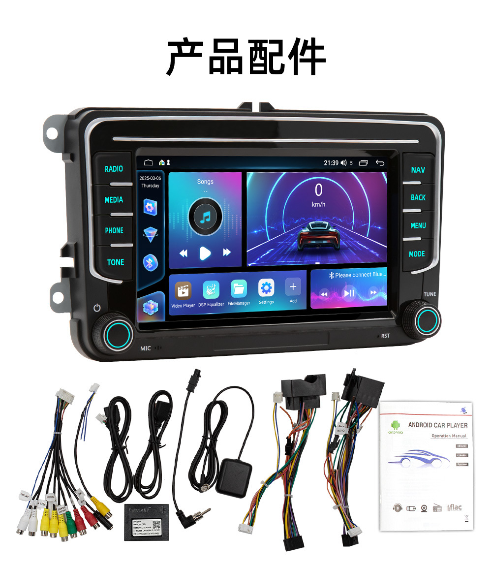 Подходит для Volkswagen General Automobile 7inch года, навигационная система Android, беспроводной CarPlay, автомобильный мультимедийный центр с функцией подключения к центральному экрану управления.